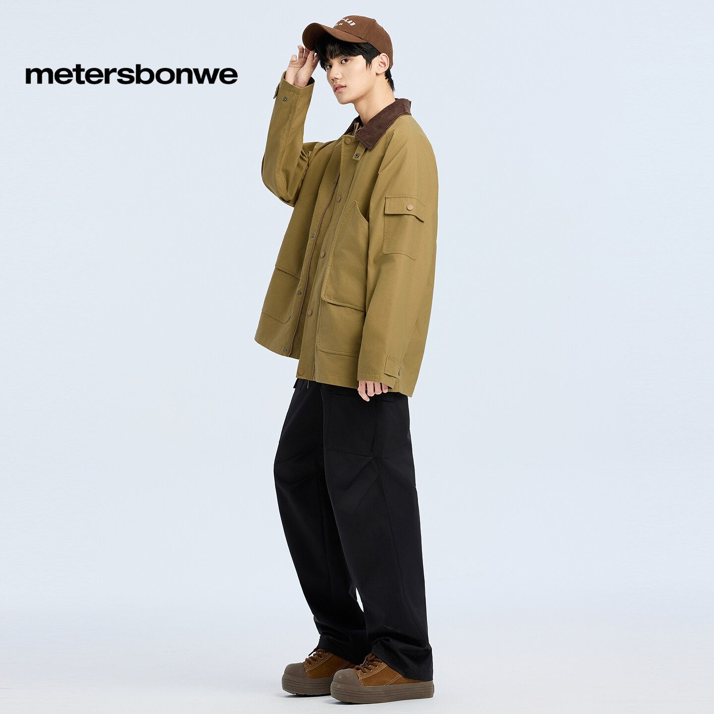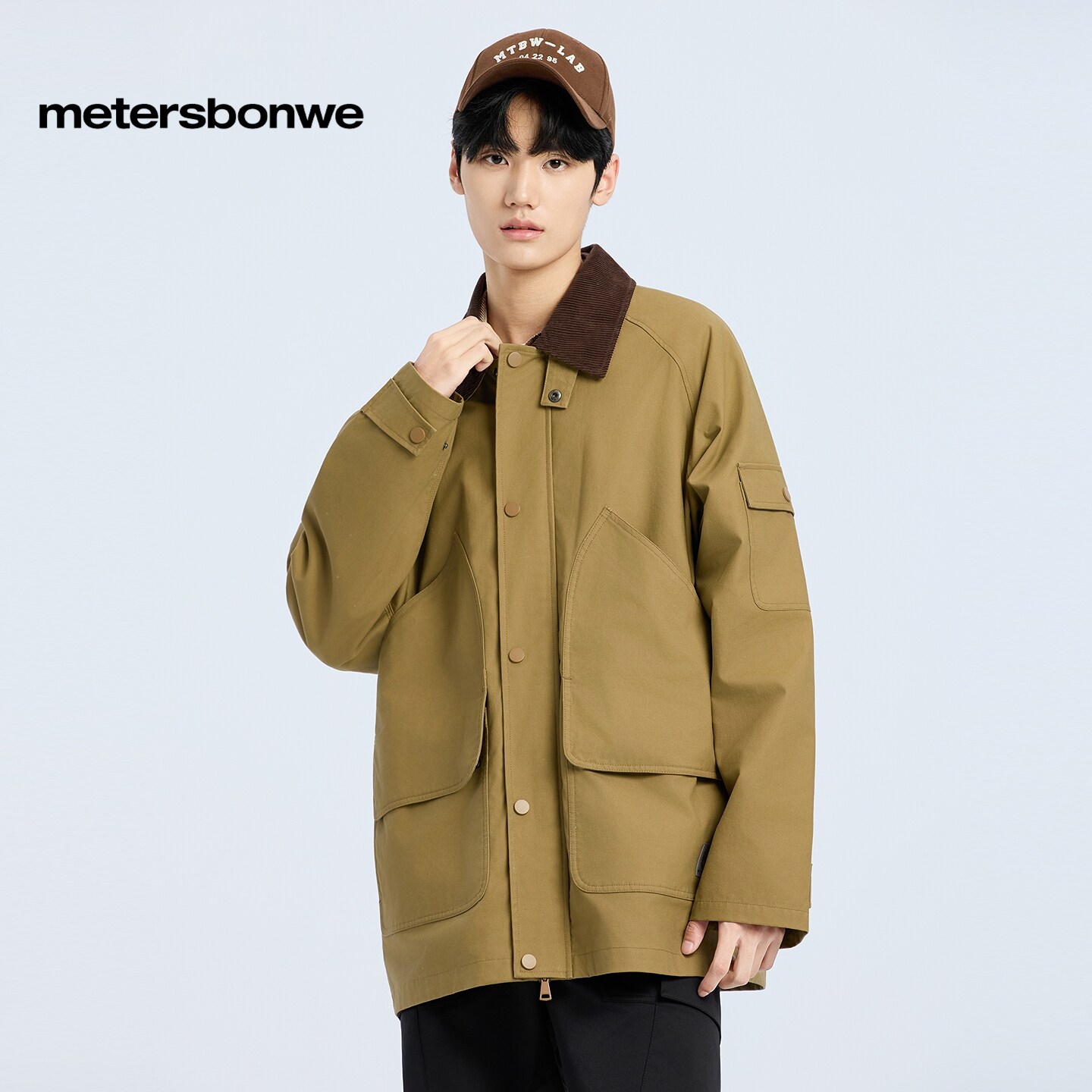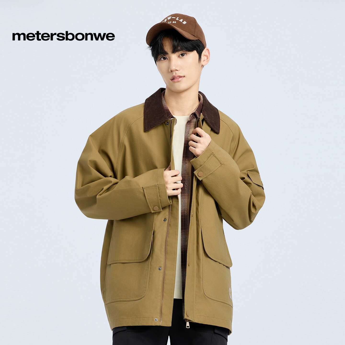 美特斯邦威夹克男年春新款宽松美式复古翻领廓形工装外套潮