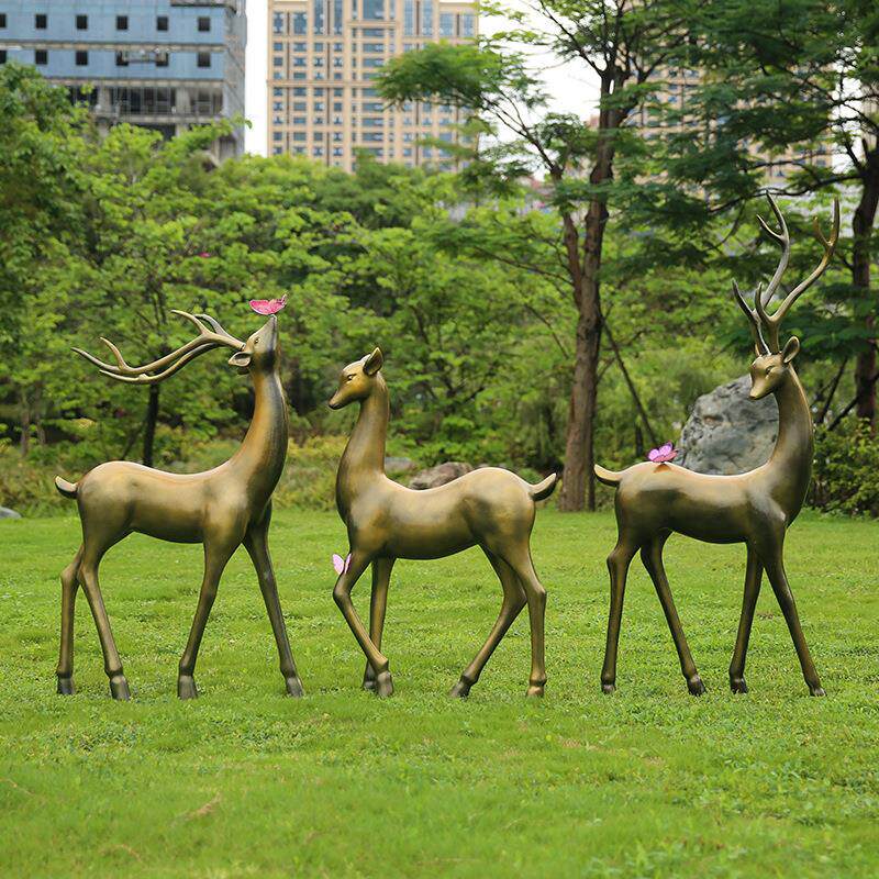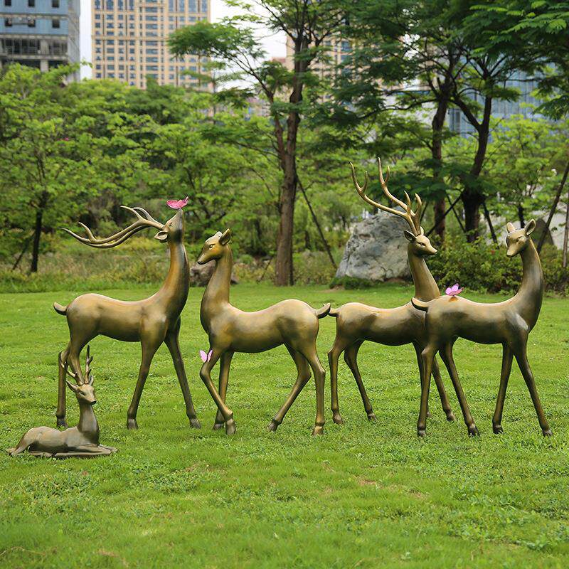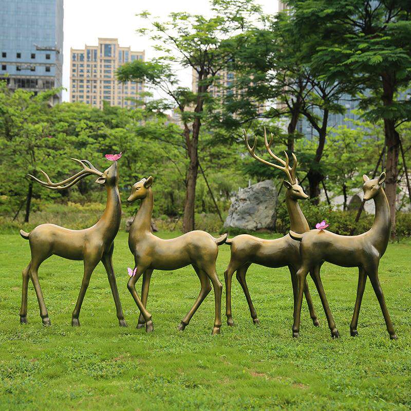 园林景观小品户外动物仿铜抽象梅花鹿玻璃钢麋鹿雕塑摆件小区装饰
