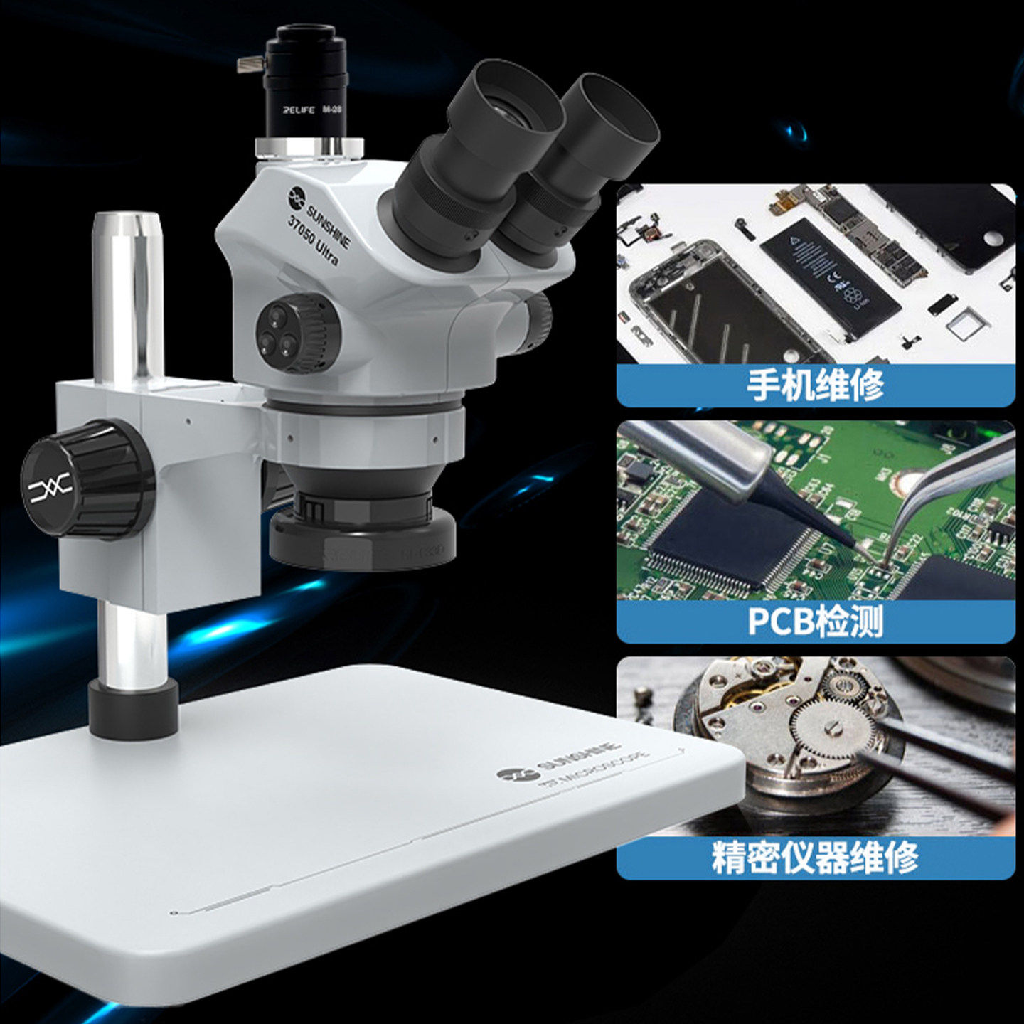 手机维修三目显微镜7-50倍连续变焦高清不模糊维修鉴定一对一调试