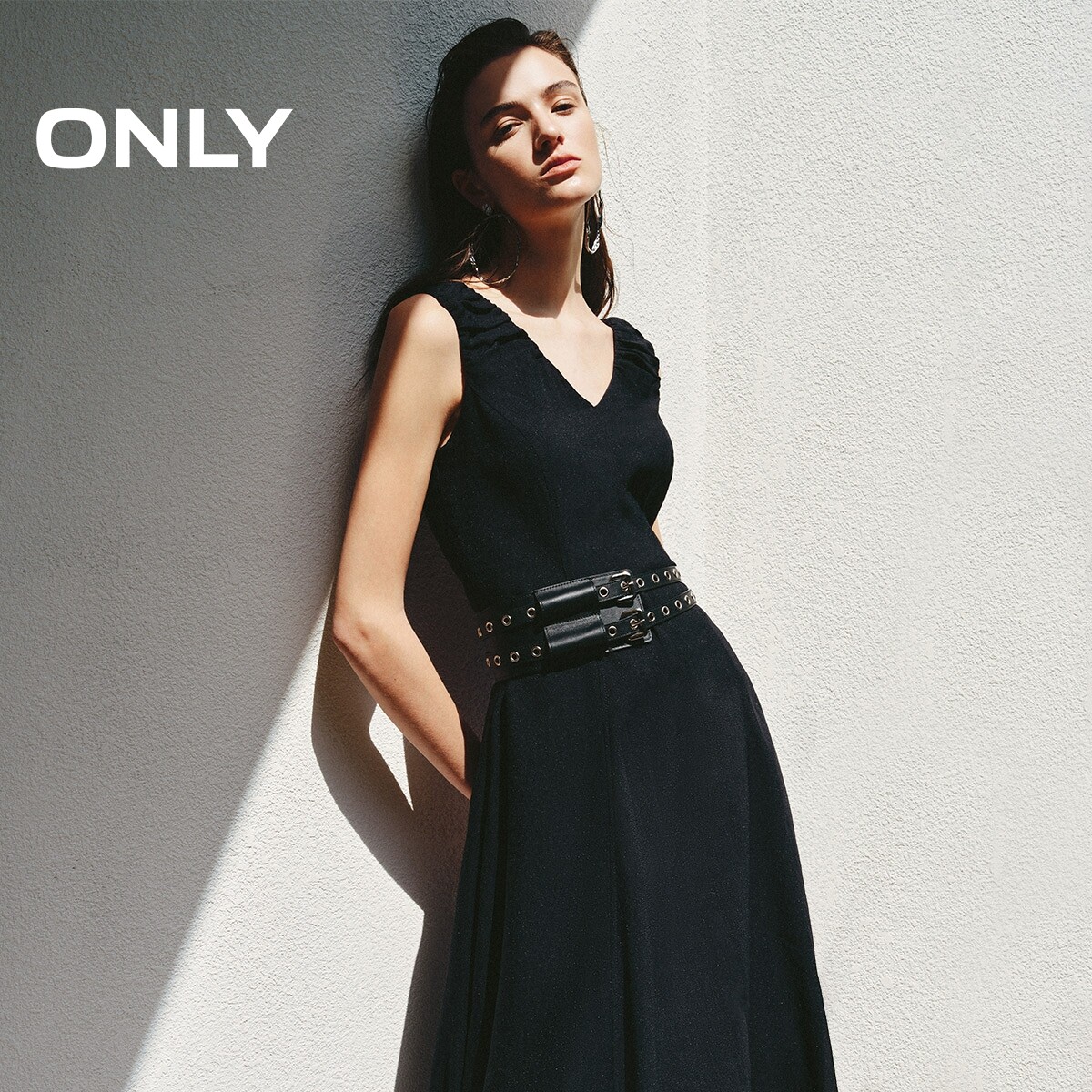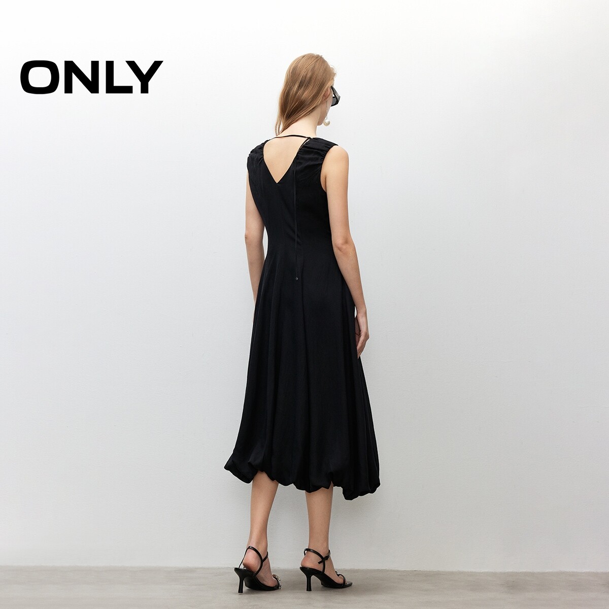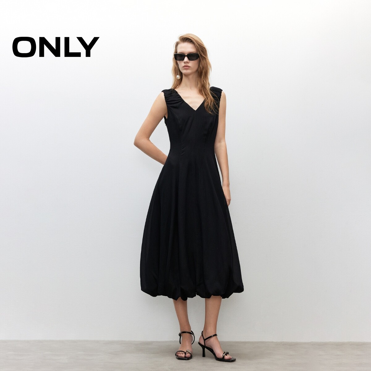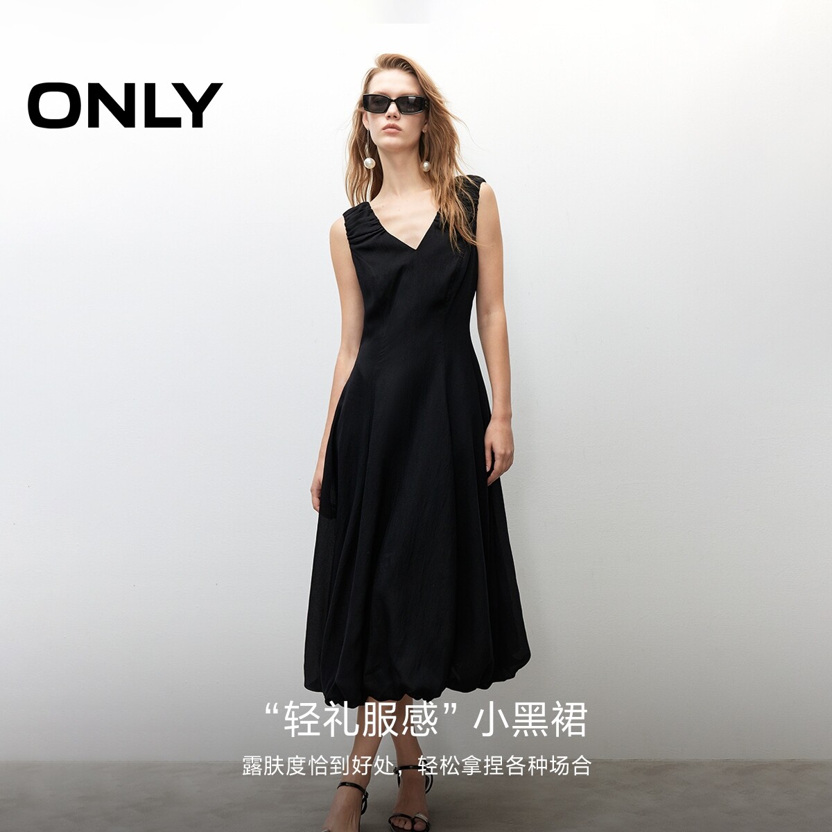 【ONLY奥莱】春夏简约纯色小黑裙显瘦V领无袖长裙花苞裙连衣裙女