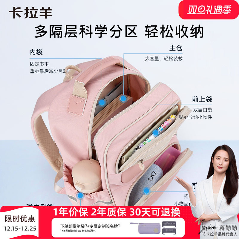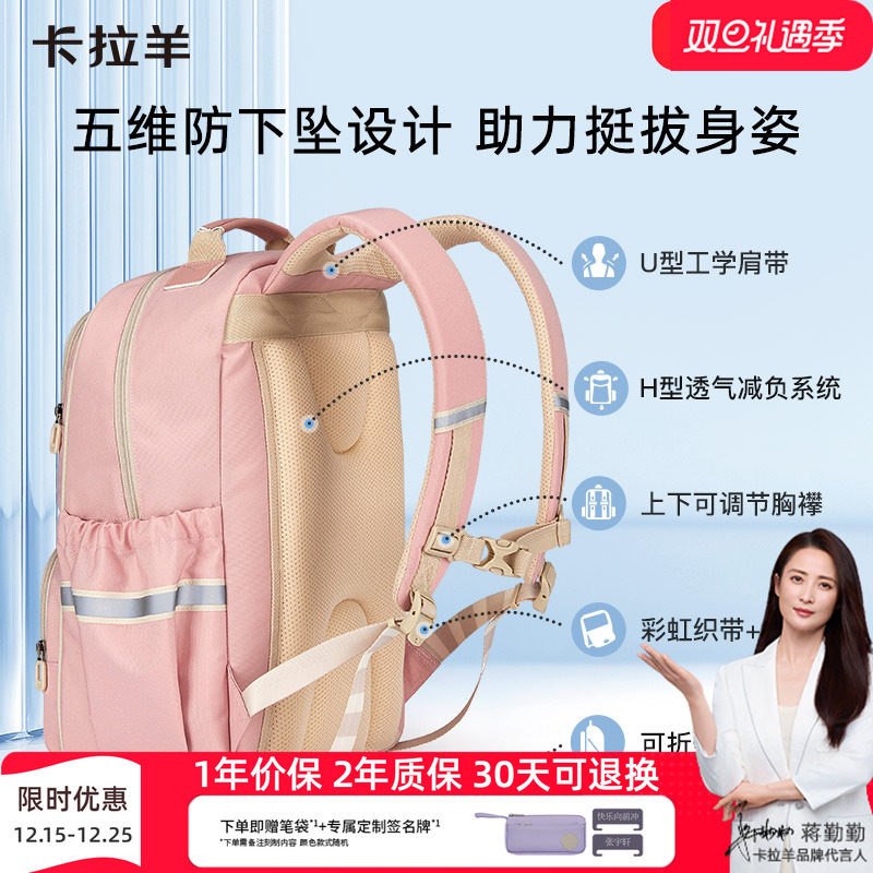 卡拉羊中学生风琴书包大容量轻便减负背包初中生双肩包男防下坠背包女