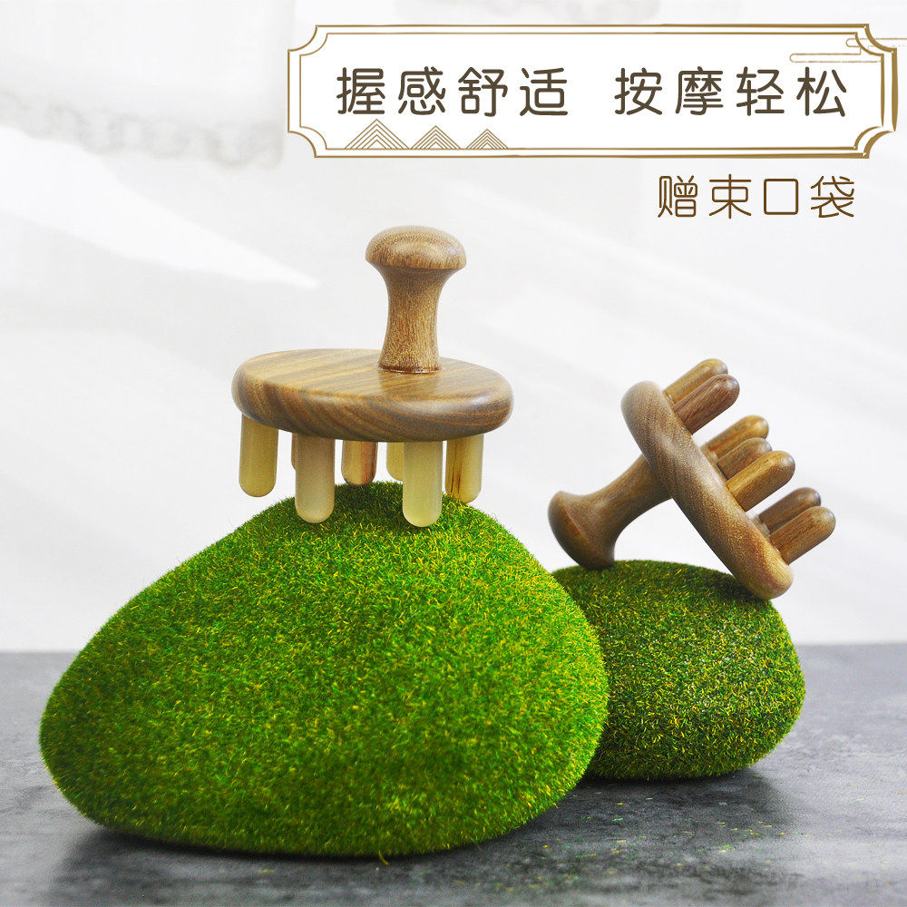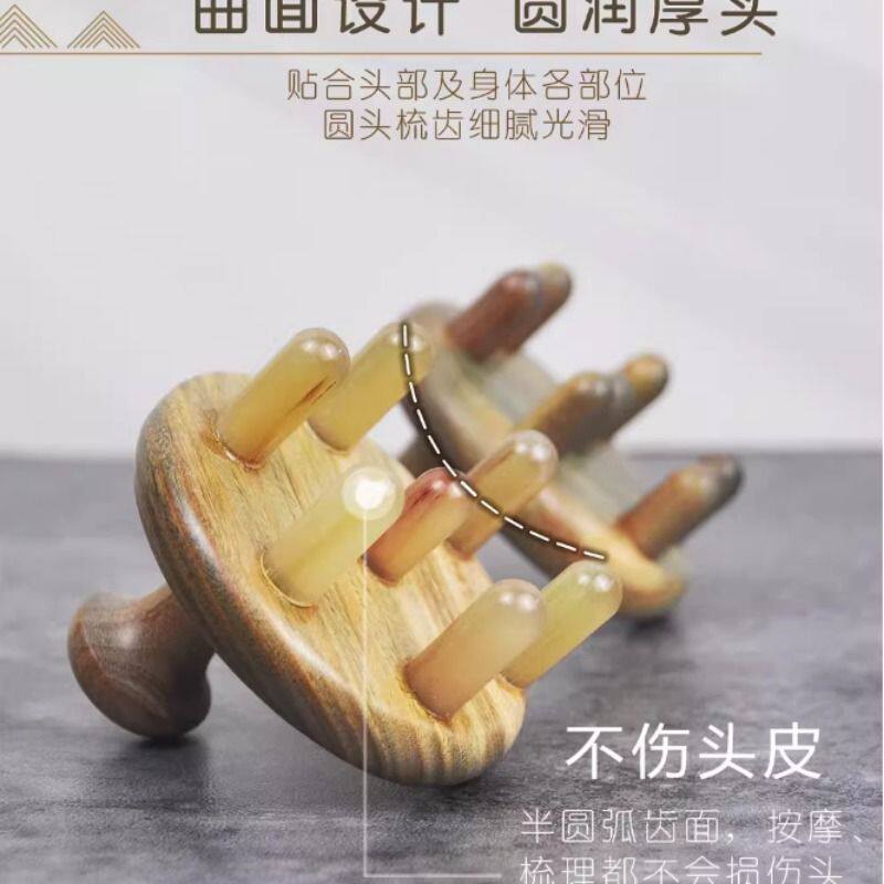 绿檀木七星圆齿按摩梳精油刮痧头皮疏通经络牛羊角洗头刷便携头部