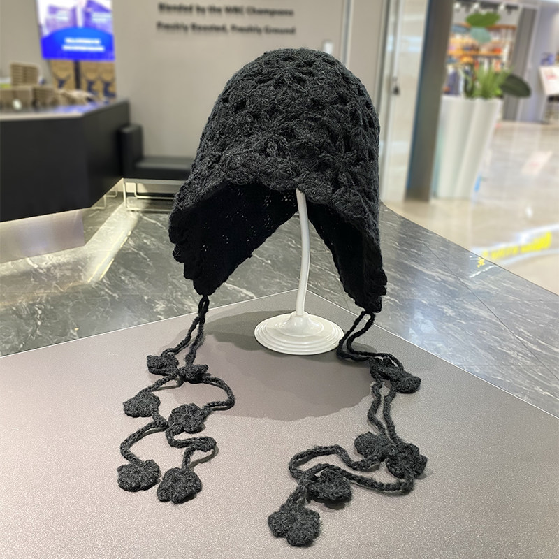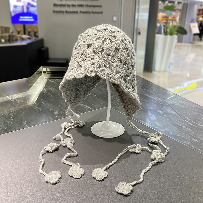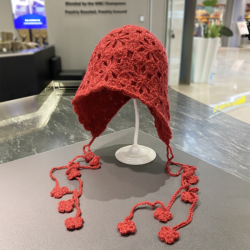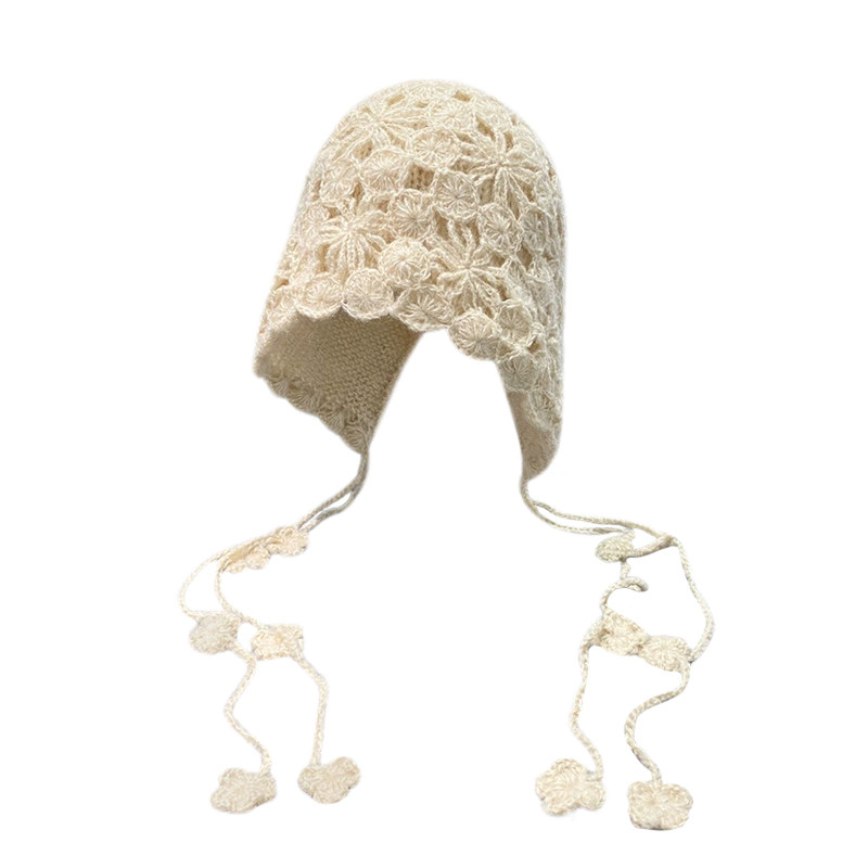 手工钩织流苏套头帽子女秋冬新款保暖百搭包头帽针织毛线帽显脸小