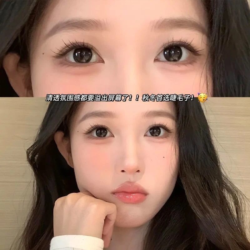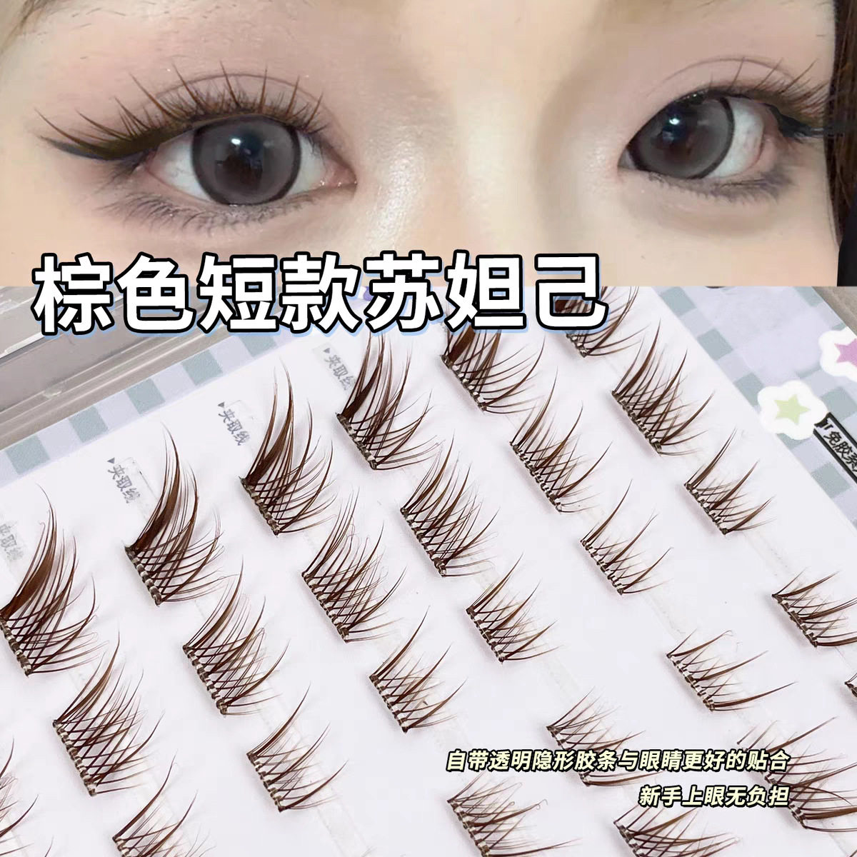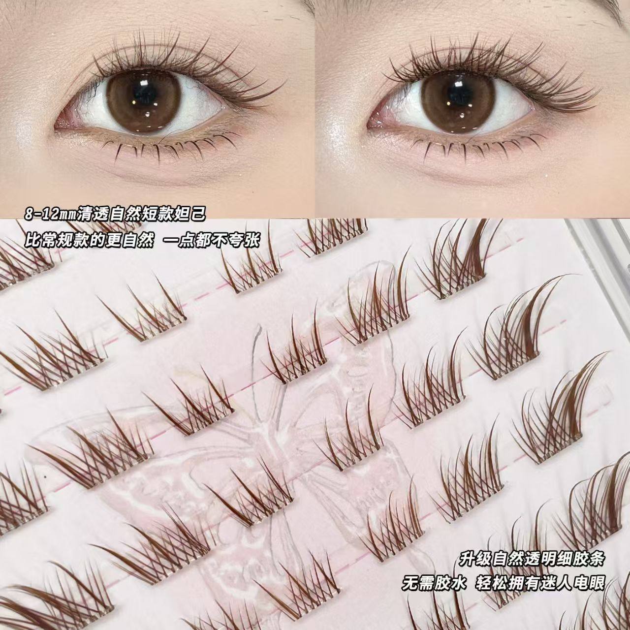 短款棕色狐系免胶假睫毛苏妲己斜飞单簇新手自粘化妆师胶水款眼线
