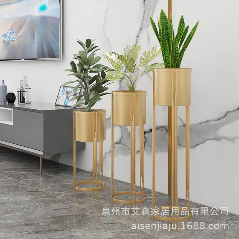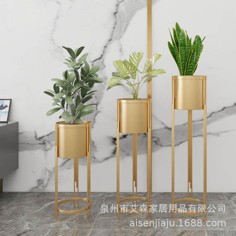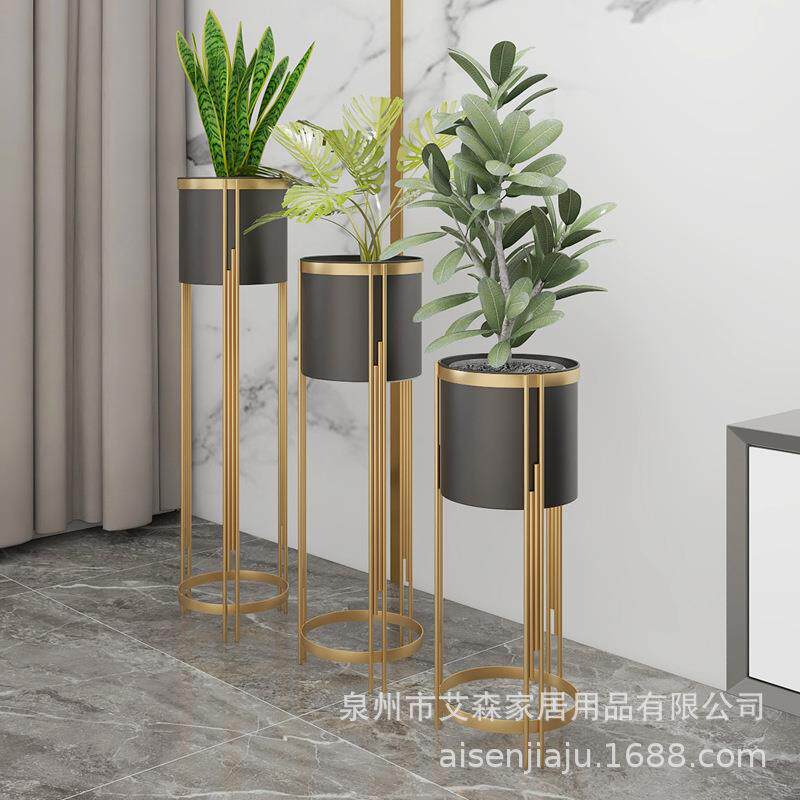 铁线圆底厂家供货简约落地式创意花架客厅方底圆桶花架花器花盆摆