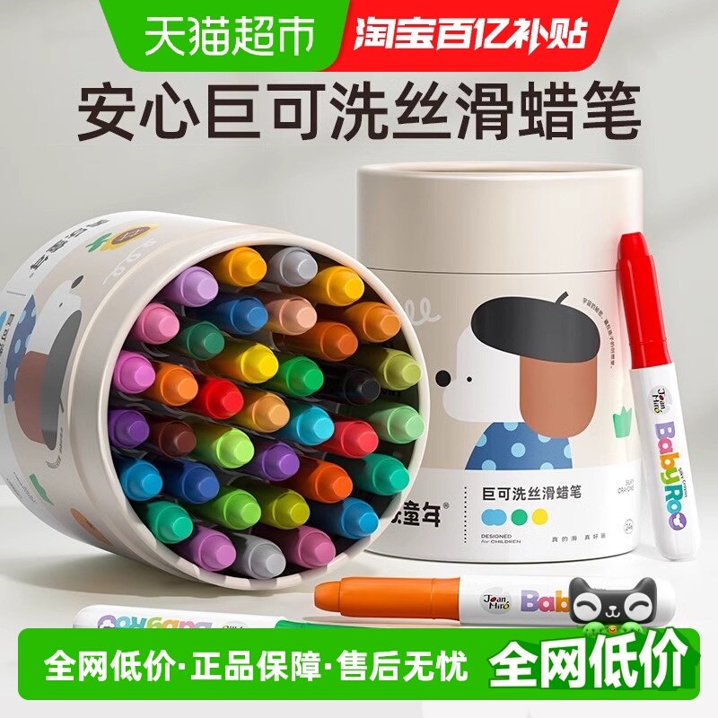 babycare宝宝羽毛丝滑蜡笔可水洗不脏手粘手安全无毒婴幼儿园彩虹油画棒儿童涂鸦画笔12/24色温和0刺激不易断