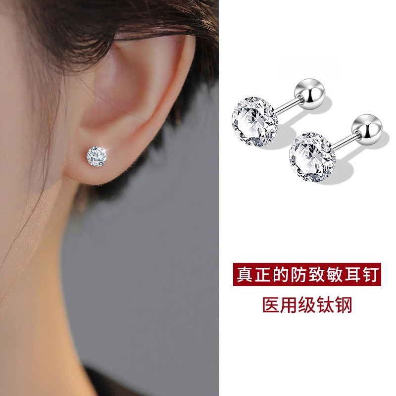 养耳洞医用钛钢耳钉女爆闪钛合金钻石华子螺丝耳骨钉2025新款耳饰
