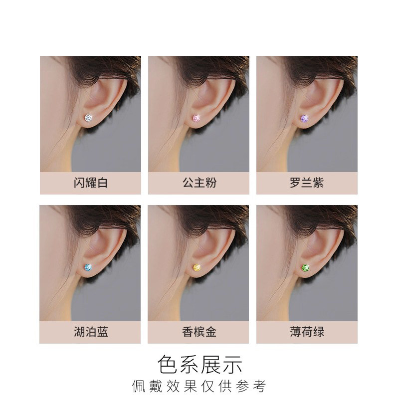 彩色猫眼石银针耳钉套装女夏日圆脸养耳洞耳环小巧精致高级感耳饰