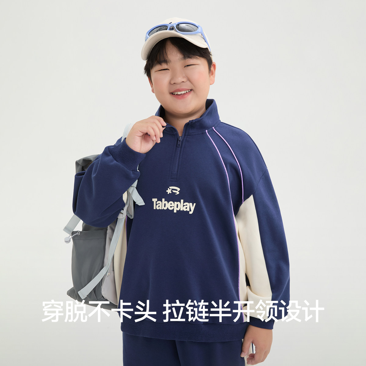 【半拉链卫衣套装】小猪托尼男胖童两件套胖童装休闲运动潮酷拼色