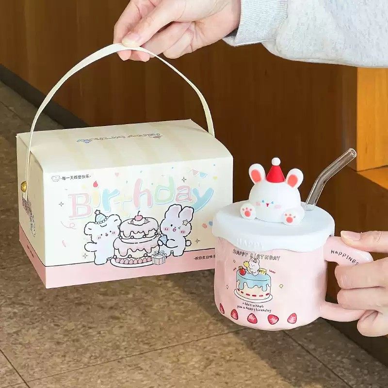 马克杯生日礼物女生可爱陶瓷杯子带盖情侣咖啡水杯家用办公室创意