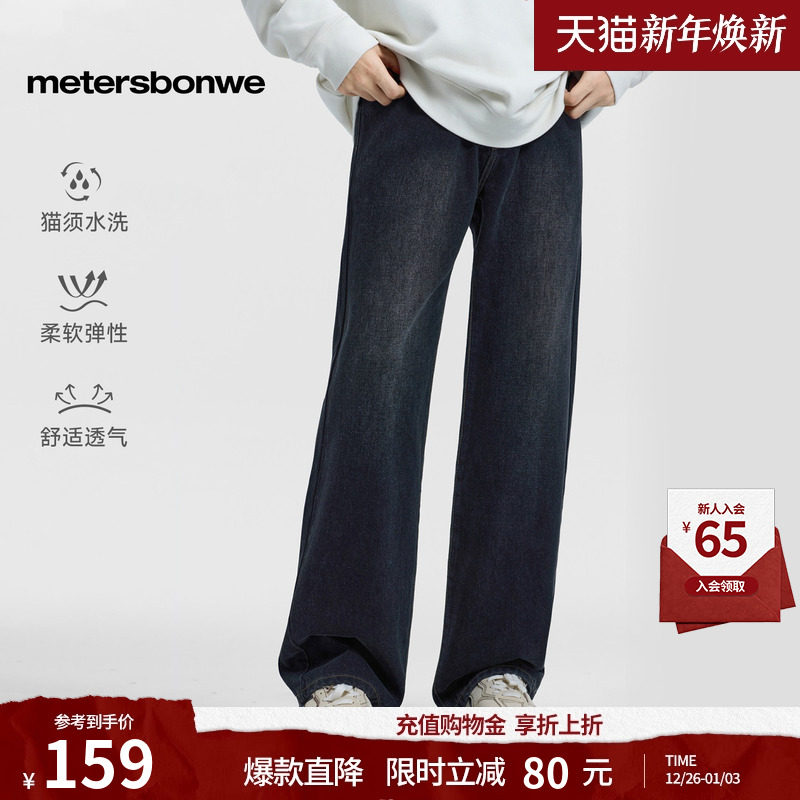 森柔牛仔森马牛仔裤男裤子新款中蓝潮宽松直筒裤子男复古百搭猫须