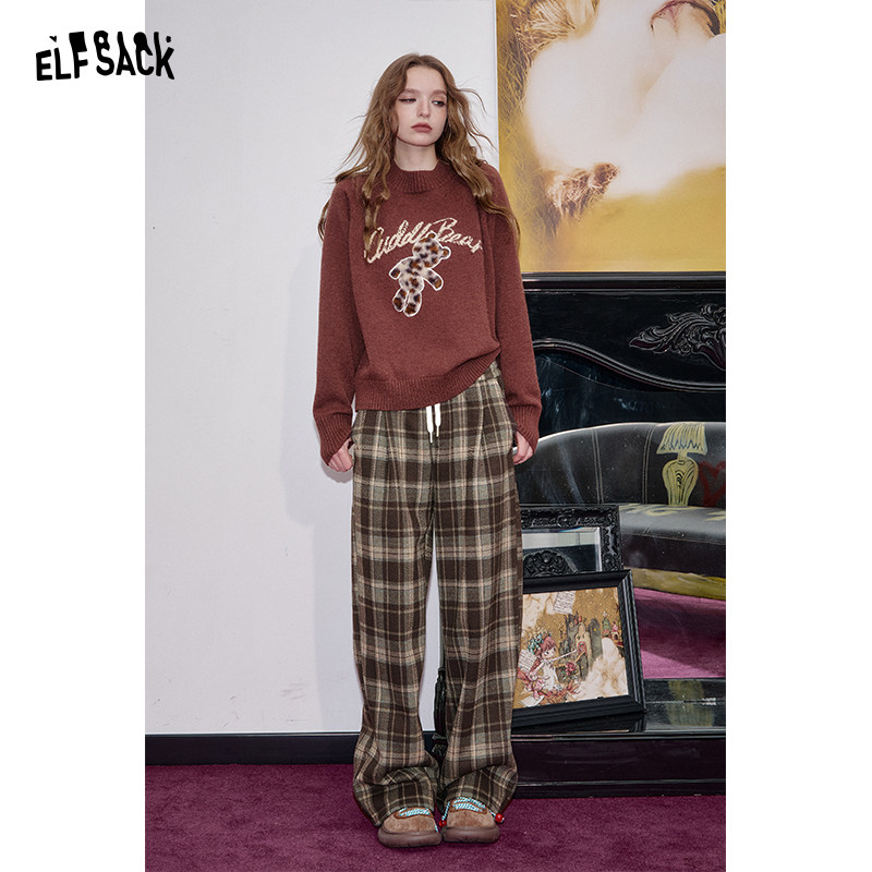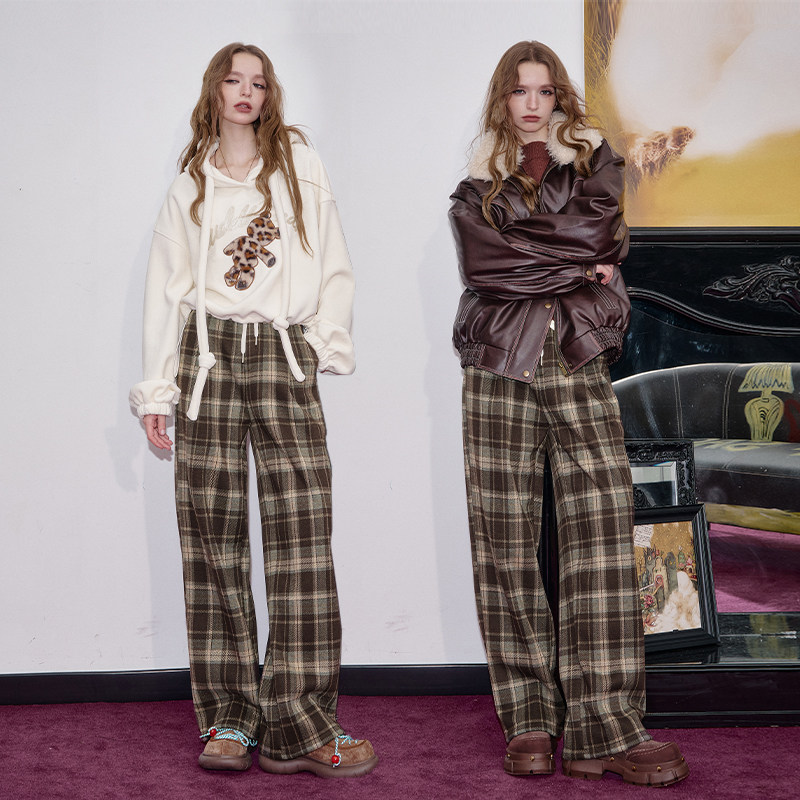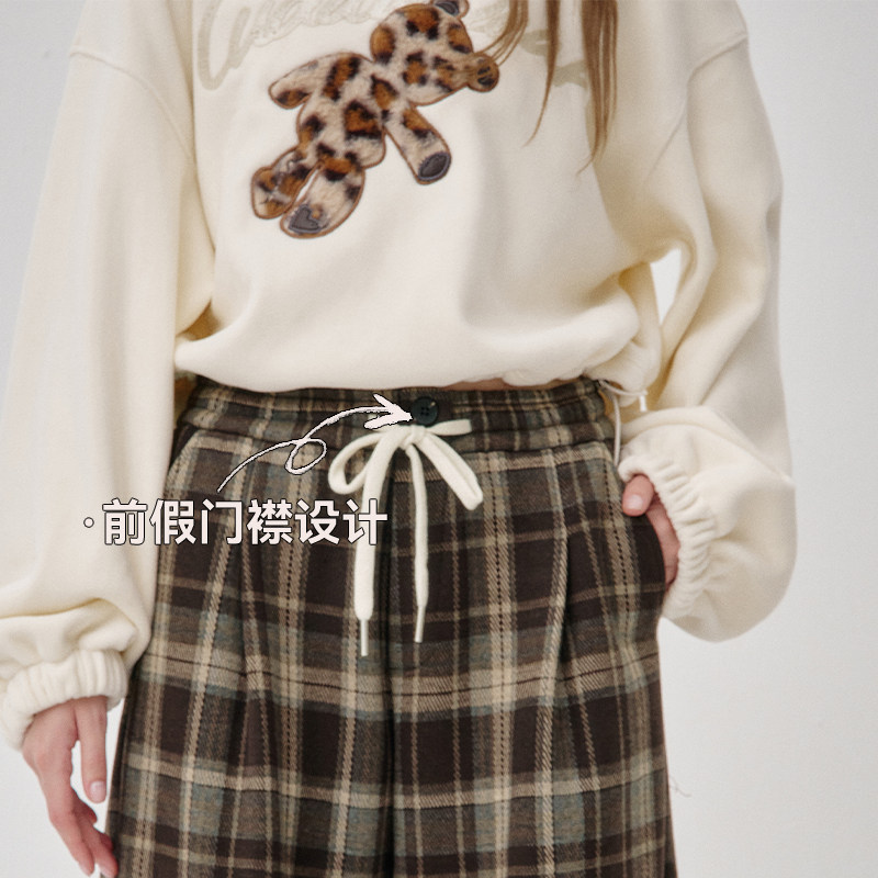 妖精的口袋复古格子阔腿裤女2025年冬季新款慵懒松弛感休闲裤子