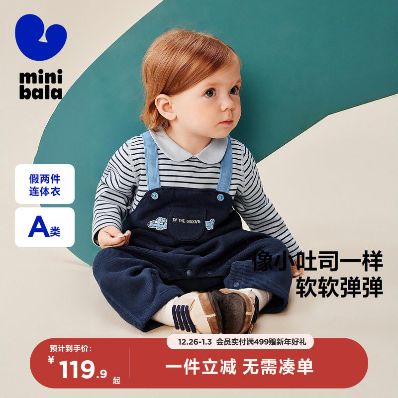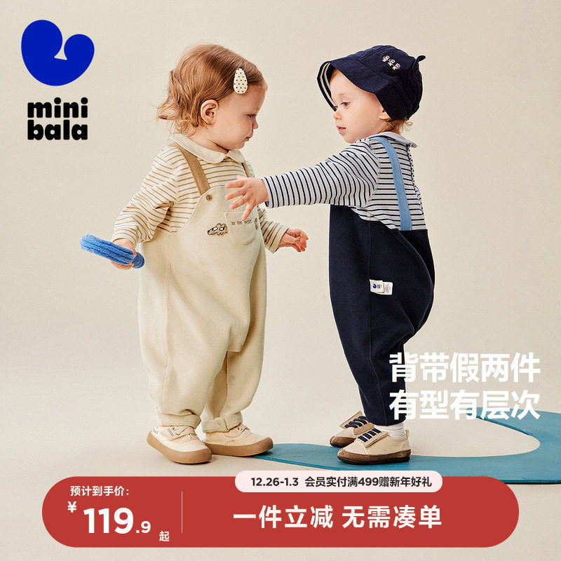 迷你巴拉巴拉婴儿衣服宝宝连体衣条纹背带裤外穿衣2025年秋季新款