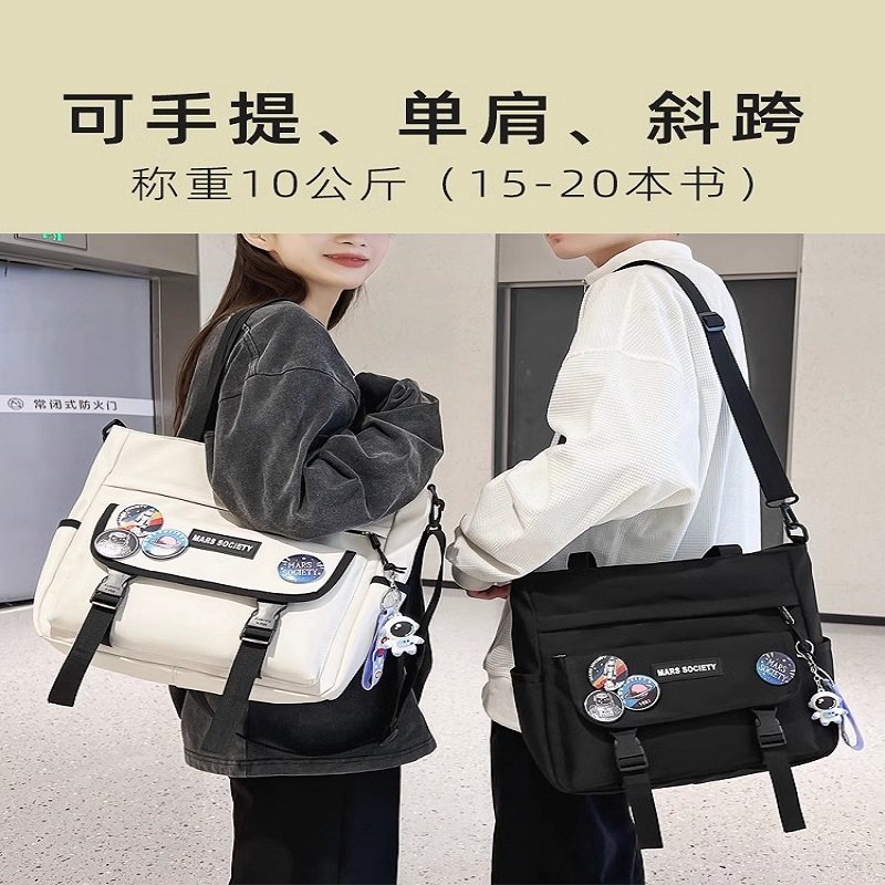 斜挎包男初中学生补课手提包男孩拎书包小学生青少年高中生补习袋