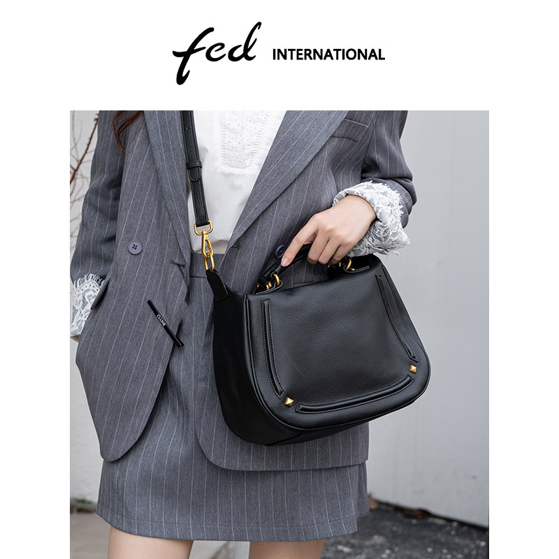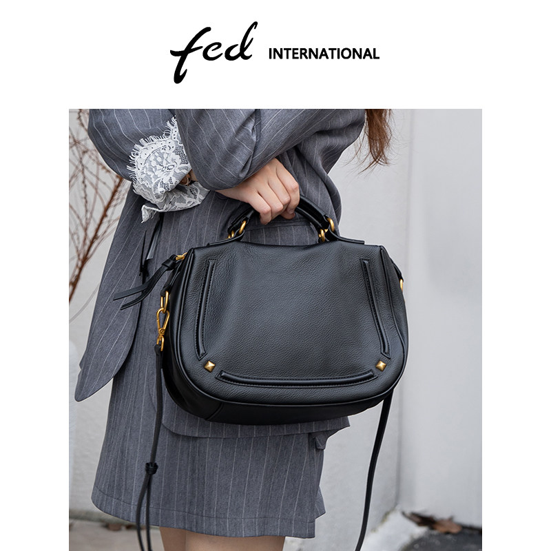 fed头层牛皮马鞍包休闲单肩手提斜挎包包大容量真皮女包BFA9422