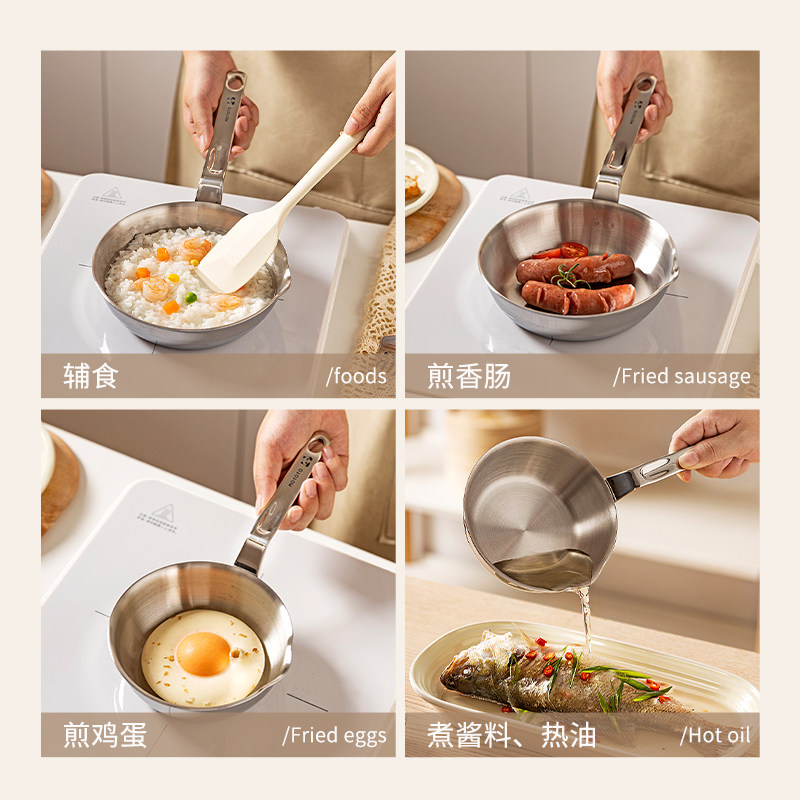 摩登主妇316L不锈钢平底锅早餐煎饼煎蛋神器家用不粘泼油小锅煎锅