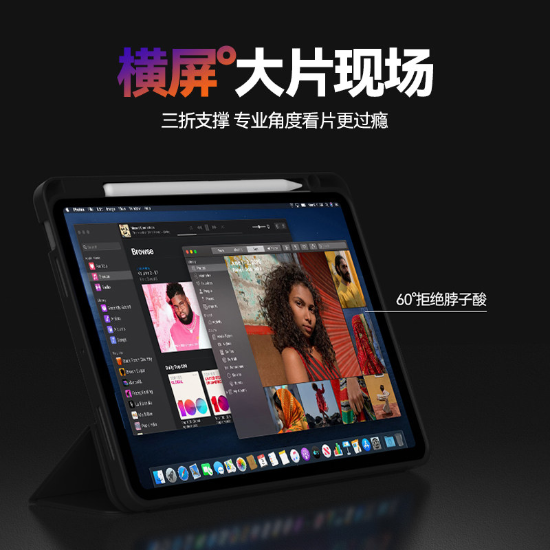 zoyu新款ipad11保护套第10代软壳带笔槽mini7全包防摔撞air645平板三折支架撑ipadpro13寸轻薄液态98新款苹果