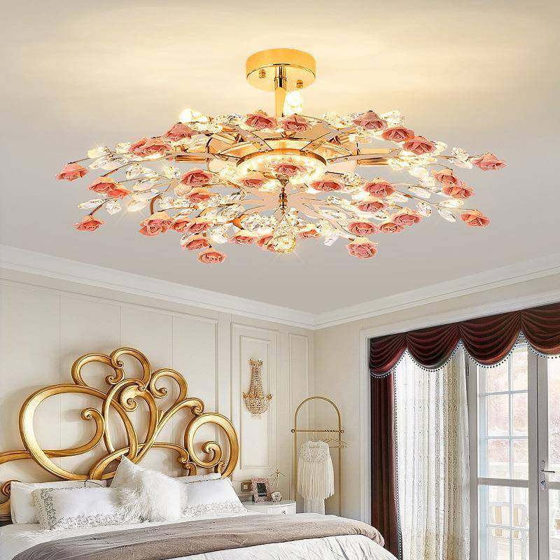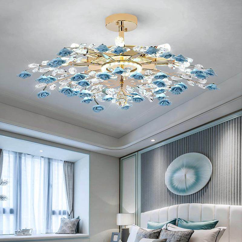新款法式吊灯创意玫瑰花朵陶瓷水晶灯吊灯客厅卧室灯饰客厅厂家