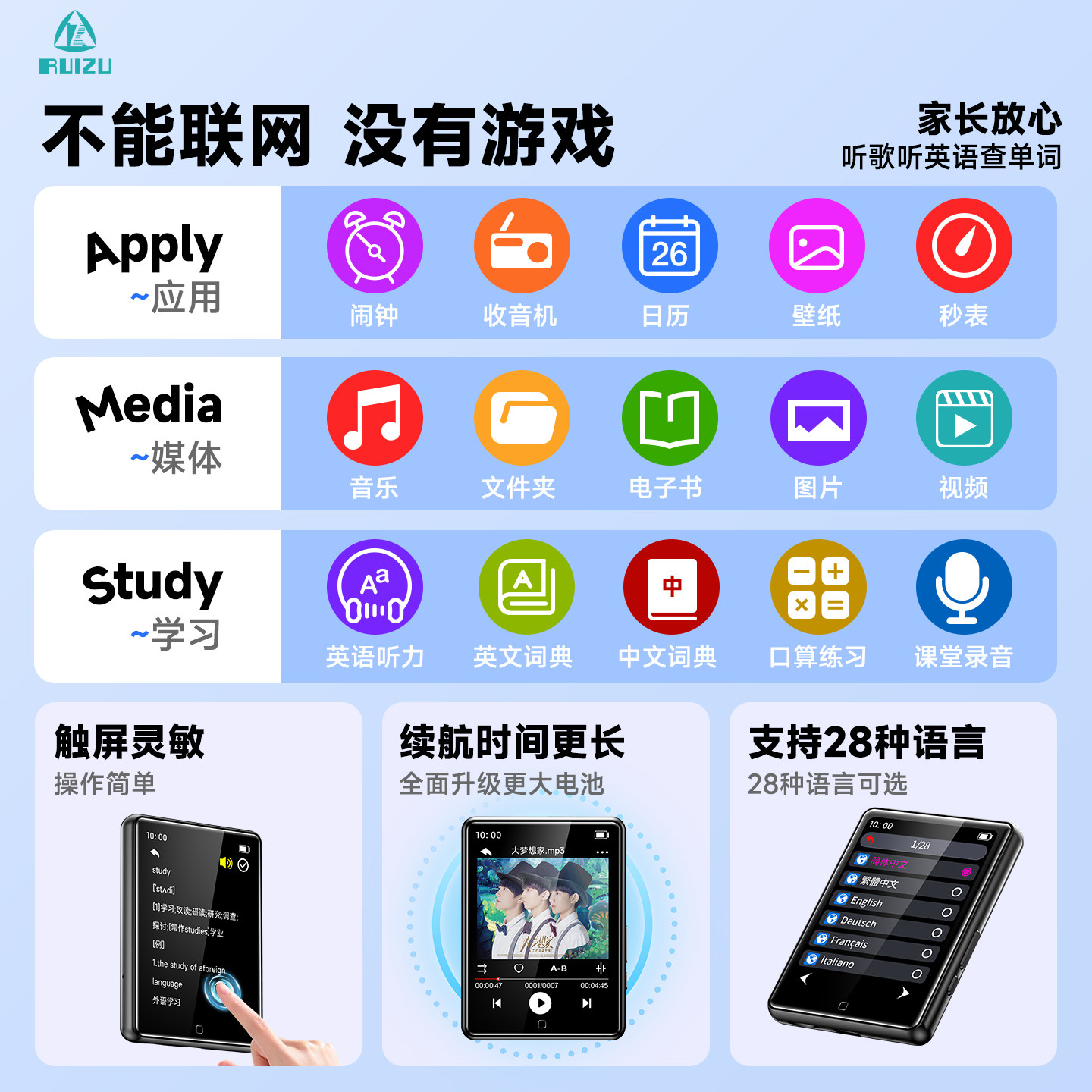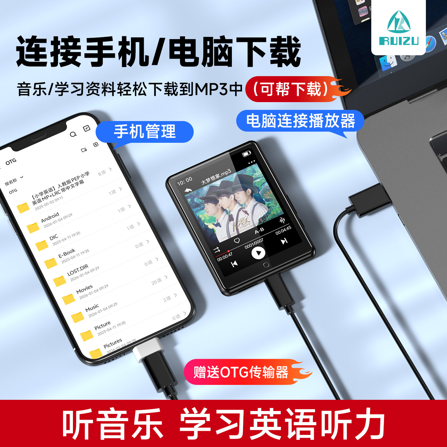 锐族mp3mp4随身听学生版高中生专用播放器mp5p6小说听歌神器mp7p9