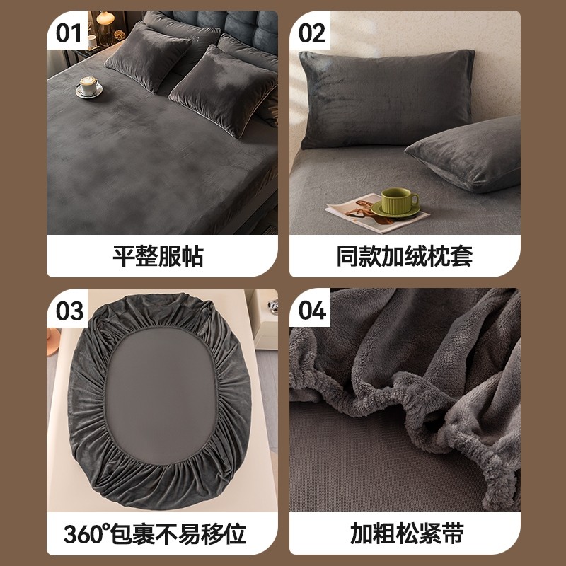 水晶绒床笠冬季加绒单件牛奶绒床笠罩法兰绒床垫套保护罩床单床套