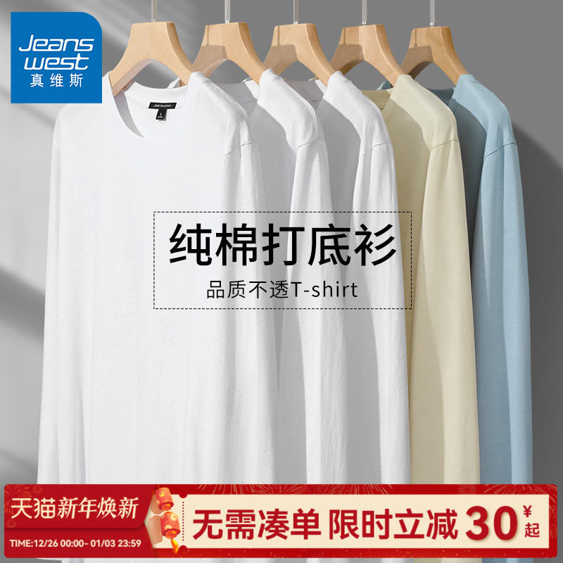GV真维斯白色打底衫男款重磅纯棉长袖t恤男冬季衣服男士内搭上衣C