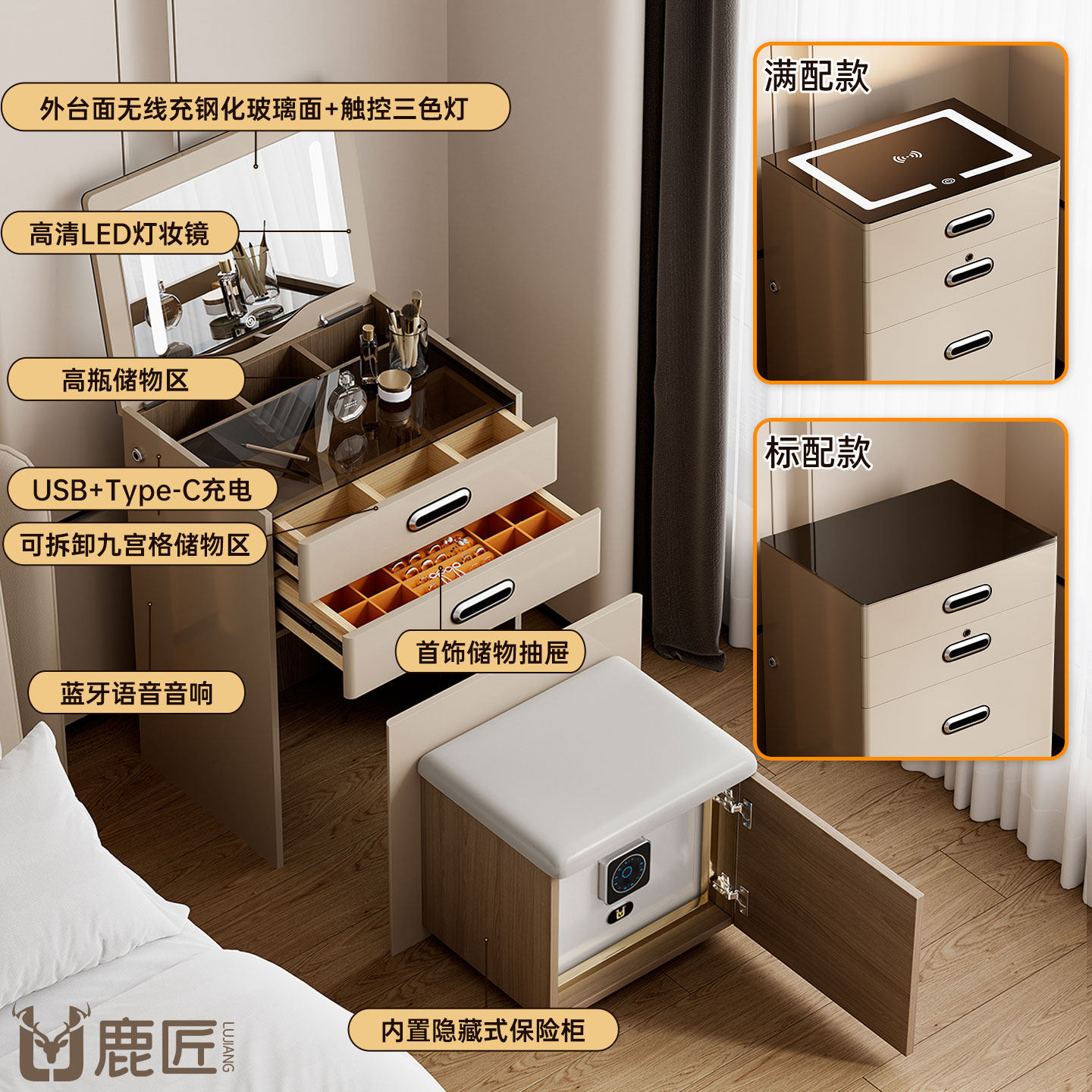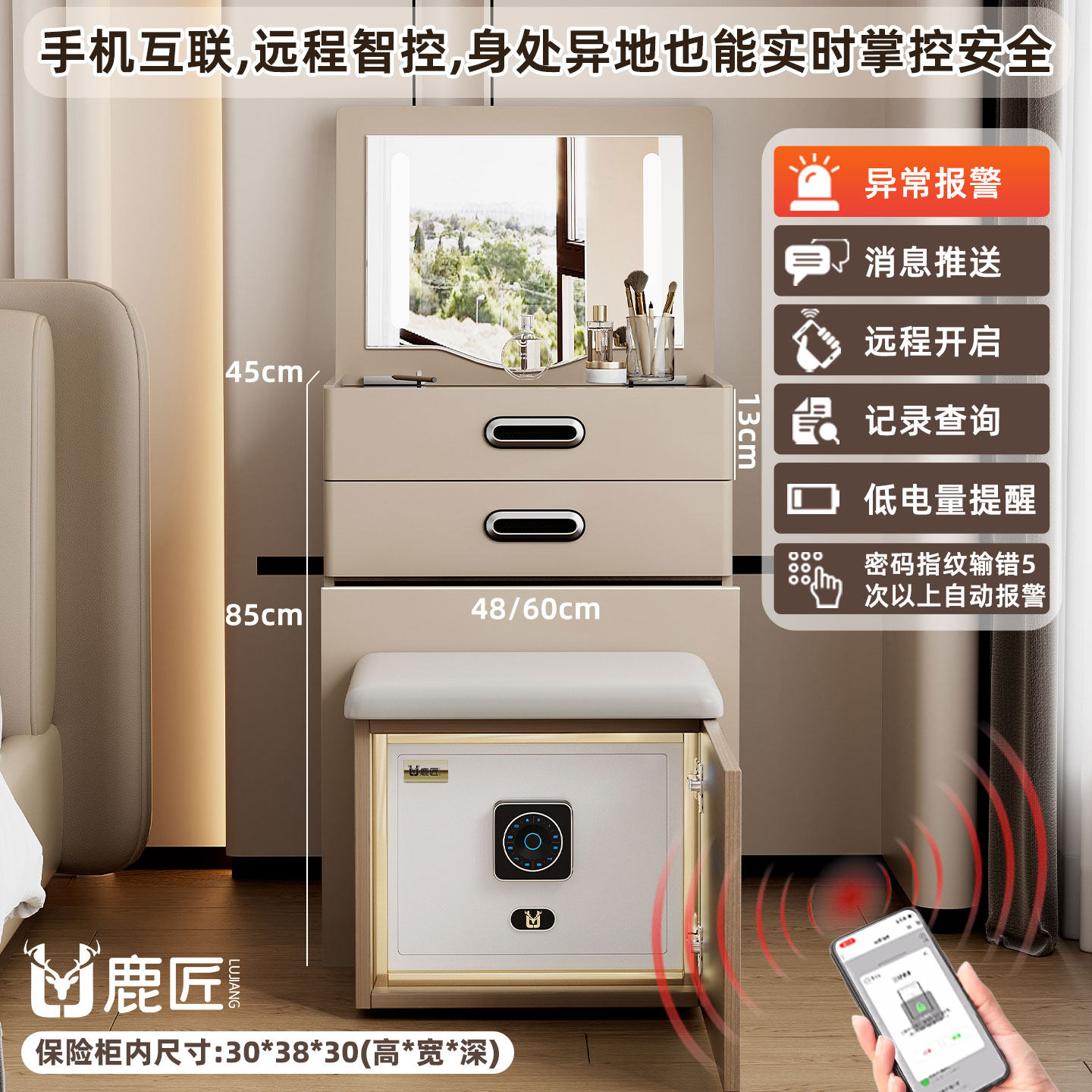 鹿匠梳妆台带保险箱2025新款智能AI斗柜床头柜收纳柜防盗家用化妆桌斗柜隐藏式小型保险柜一体