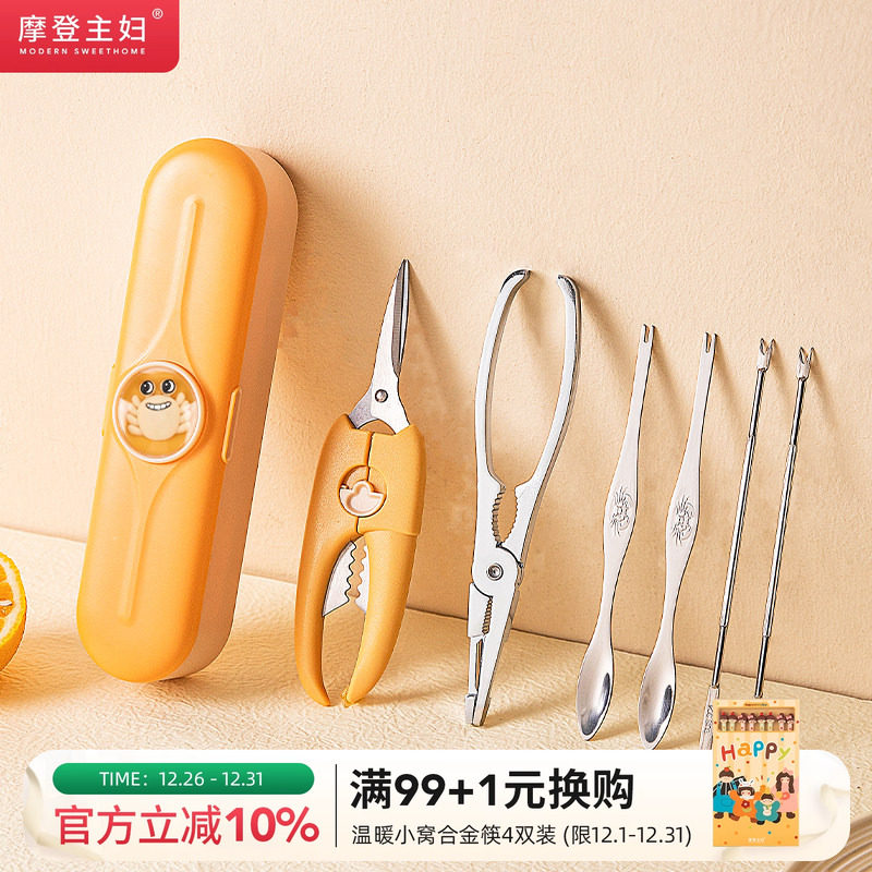 摩登主妇吃螃蟹专用工具蟹八件钳夹大闸蟹剪刀拆蟹工具剥螃蟹神器