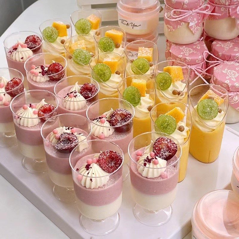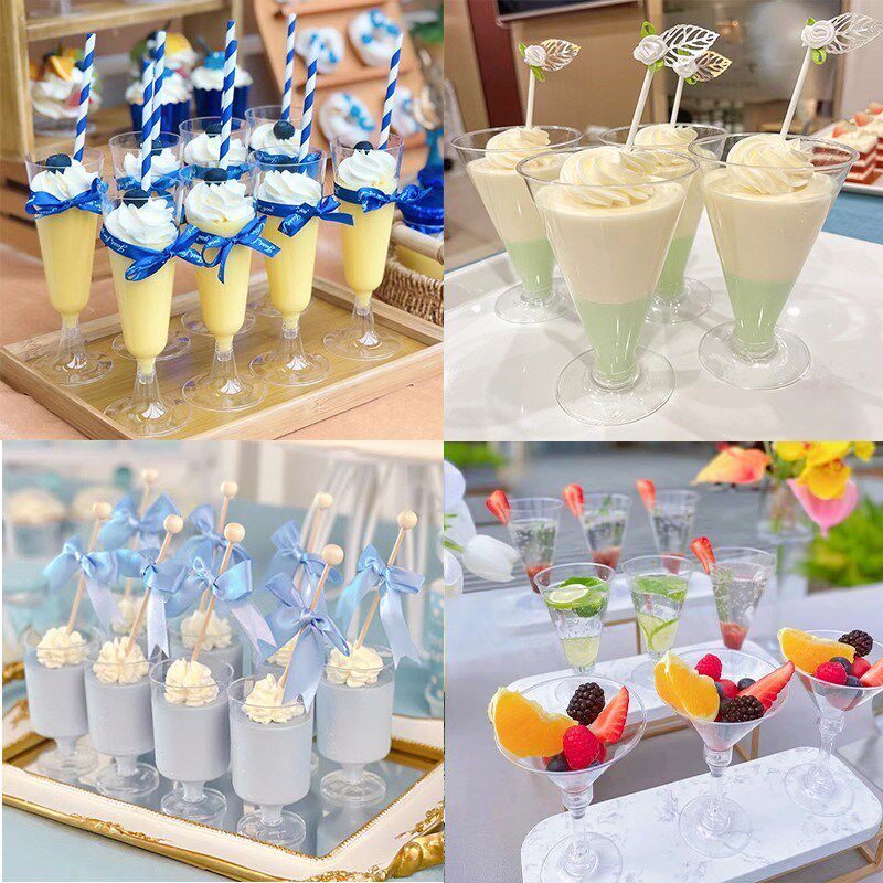 高脚慕斯杯透明布丁杯木糠杯蛋糕杯一次性塑料杯耐高温甜品台杯子