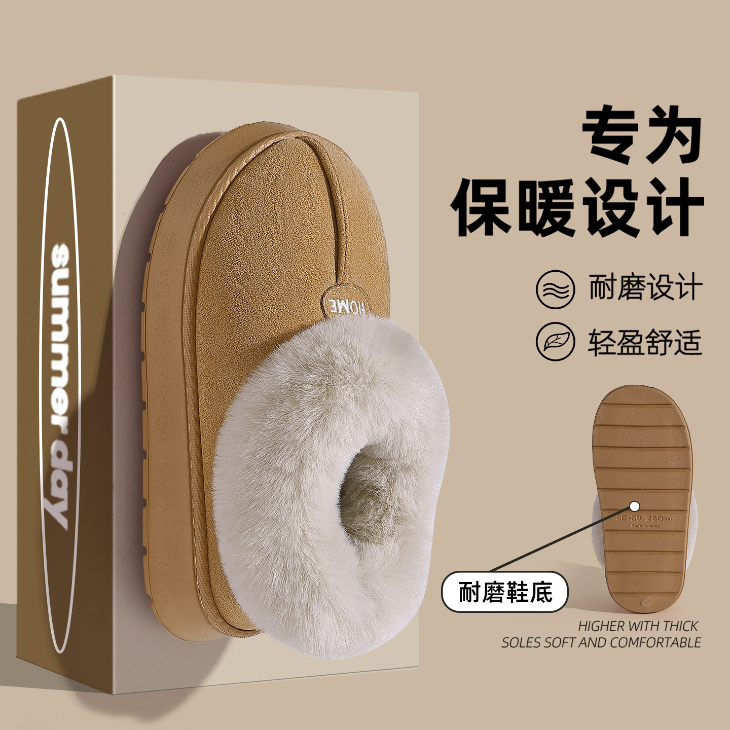 2026新款翻半包跟棉拖加绒保暖情侣外穿毛毛绒厚底防滑居家棉拖鞋
