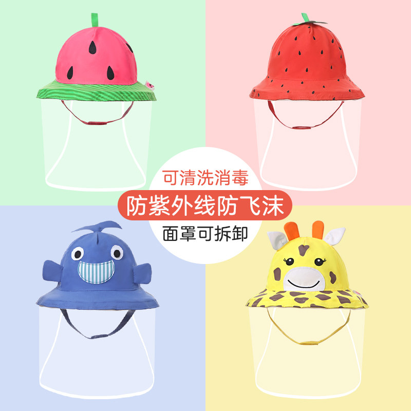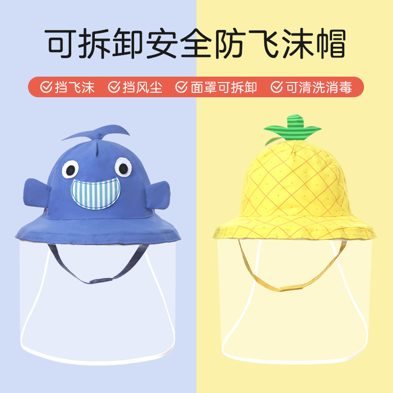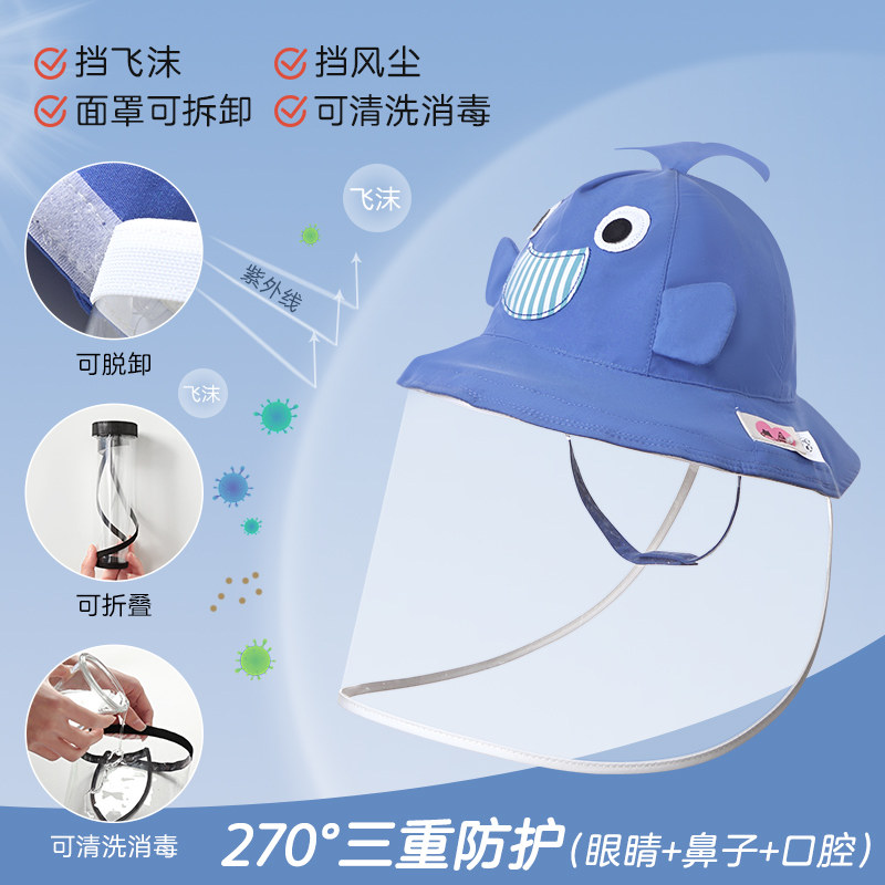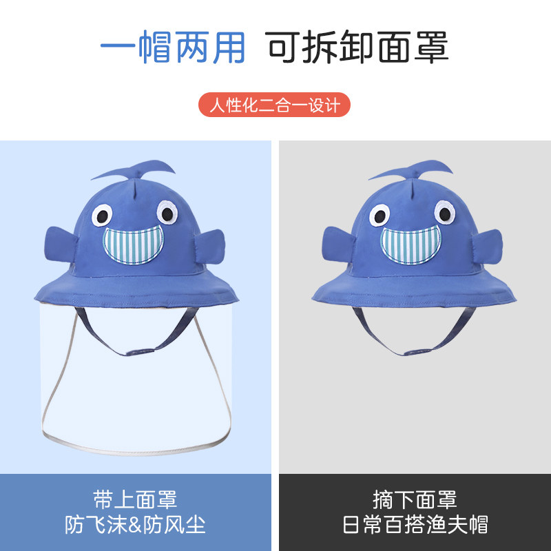 伊米伦婴儿防护帽子防飞沫面罩脸罩宝宝外出防唾液渔夫帽子可脱卸