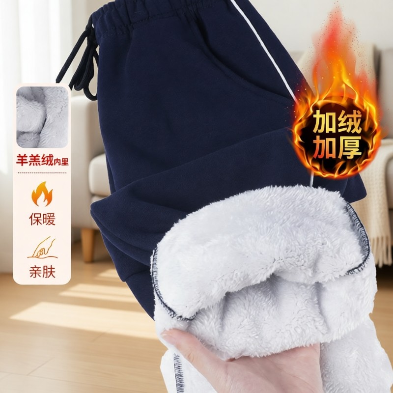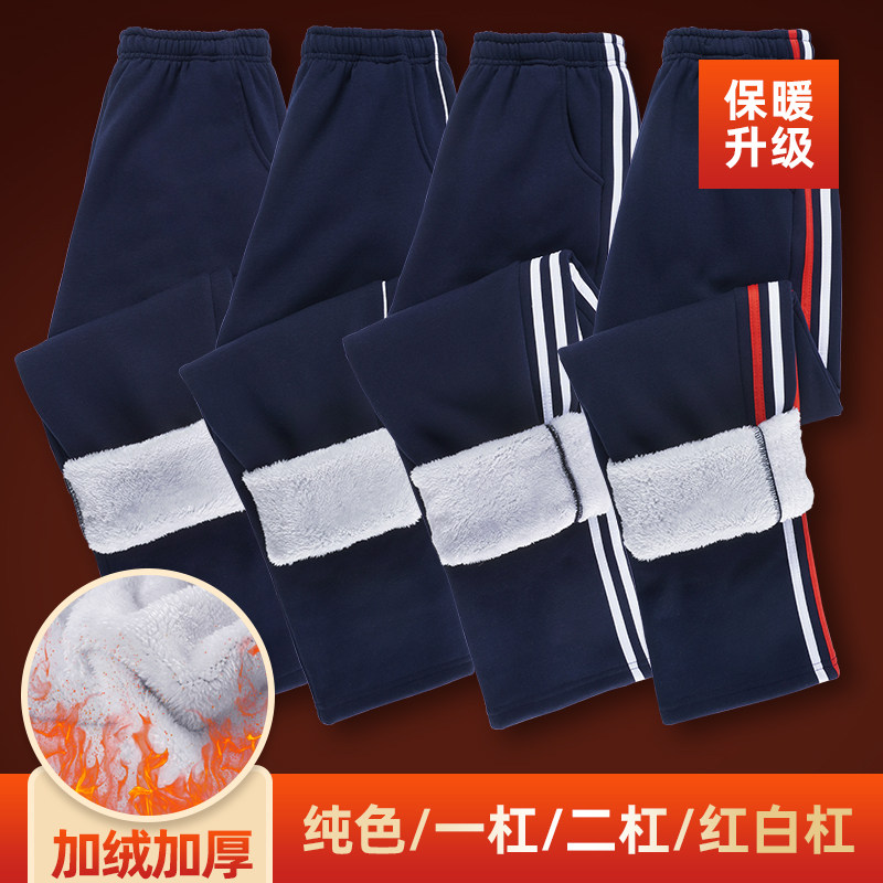初中校服裤子冬季羊羔绒二条杠男女藏青色加绒加厚运动裤休闲蓝色
