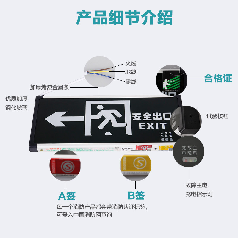 消防安全出口指示牌新国标应急灯照明灯楼梯道紧急逃生通道疏散标志灯商用物业双面插电led应急警示牌标示贴