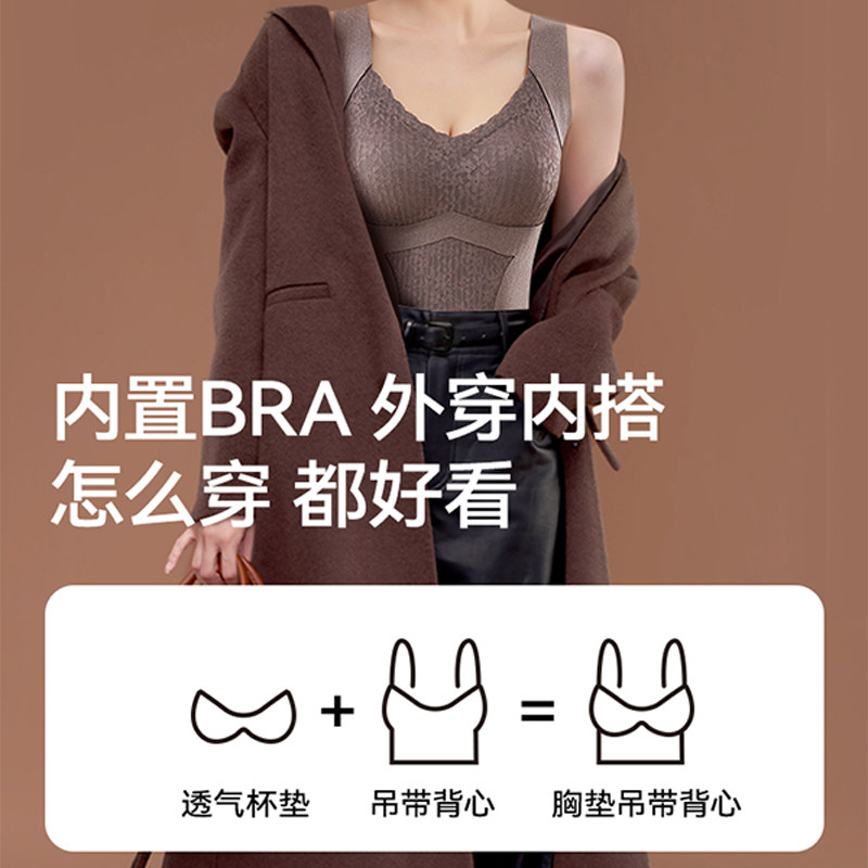 秋冬无痕保暖背心女带胸垫加厚德绒吊带内衣自发热一体打底上衣