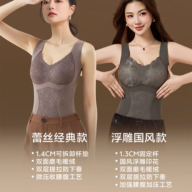 张雨绮|曲线主义保暖背心女塑身内搭冬带胸垫磨毛胸罩一体式内衣