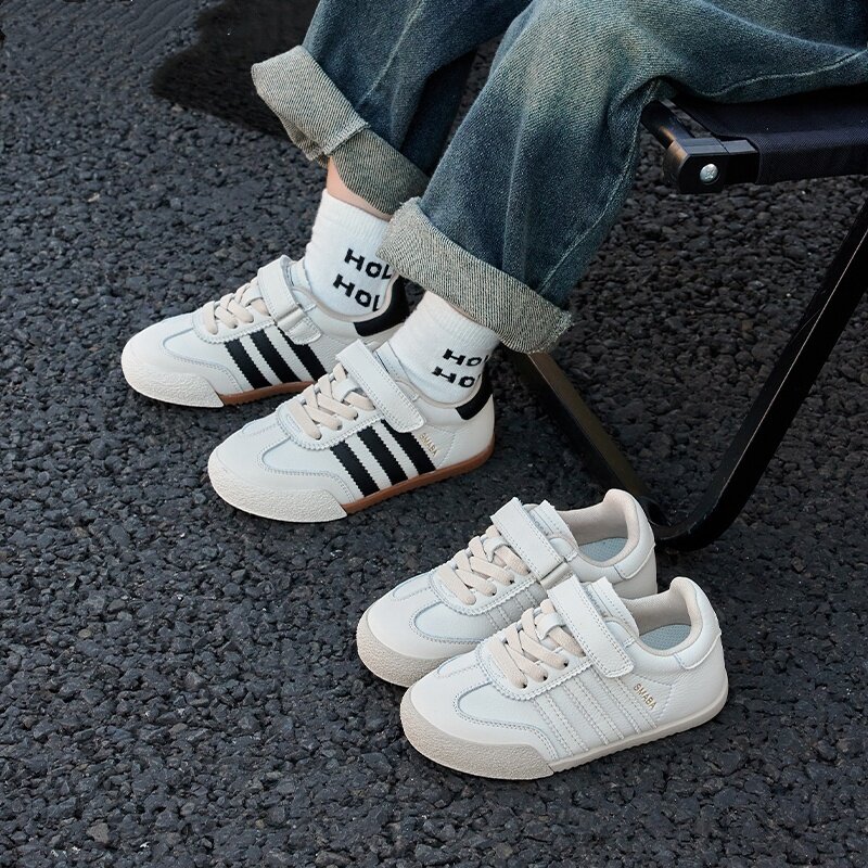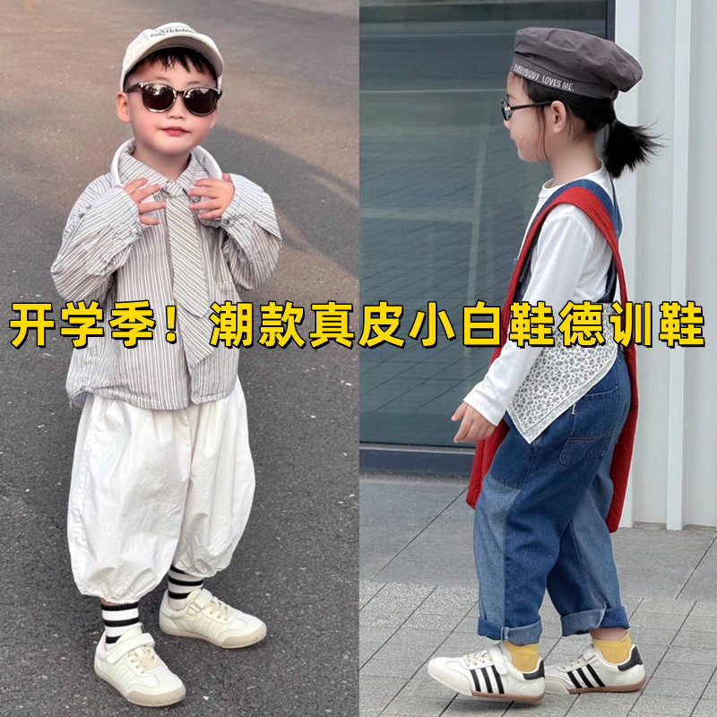 巴布豆女童黑白德训鞋2025秋款童鞋男童软底运动鞋儿童百搭小白鞋