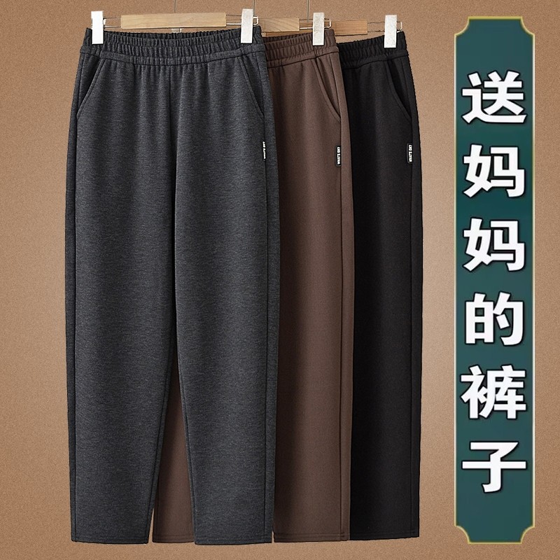 中老年秋冬款直筒裤女奶奶大码裤子妈妈加绒加厚松紧腰宽松休闲裤
