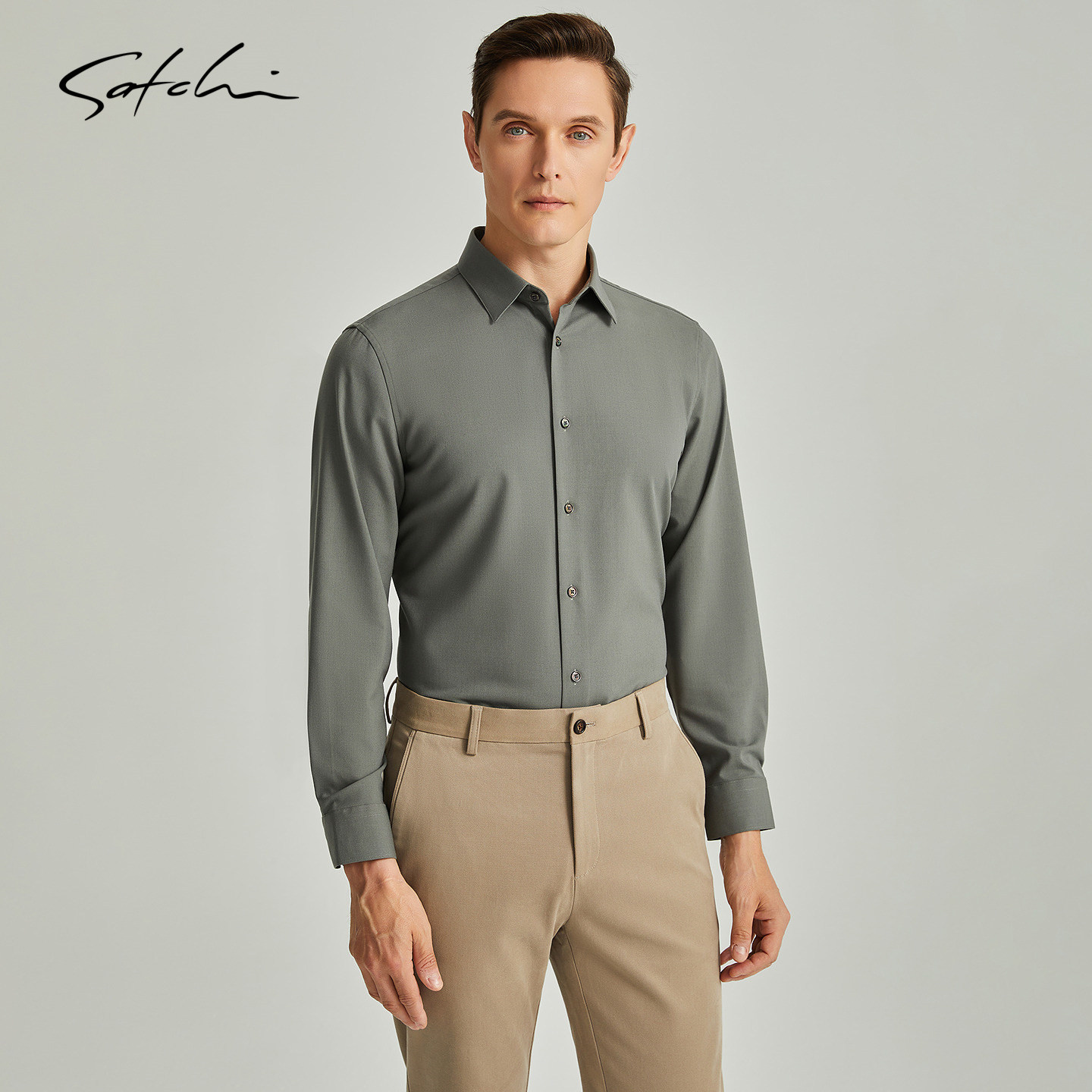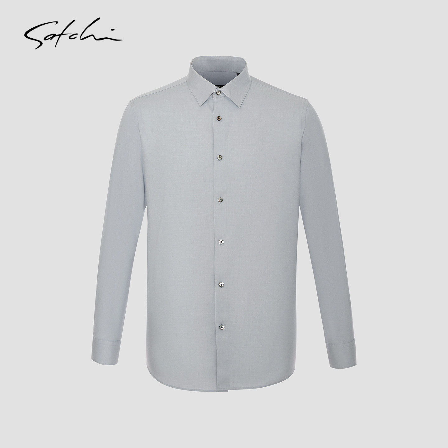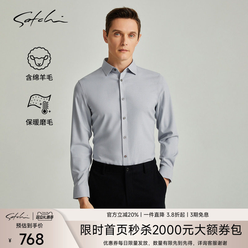 [羊毛]SATCHI沙驰男装男士磨毛长袖衬衫冬季新款商务高端保暖衬衣