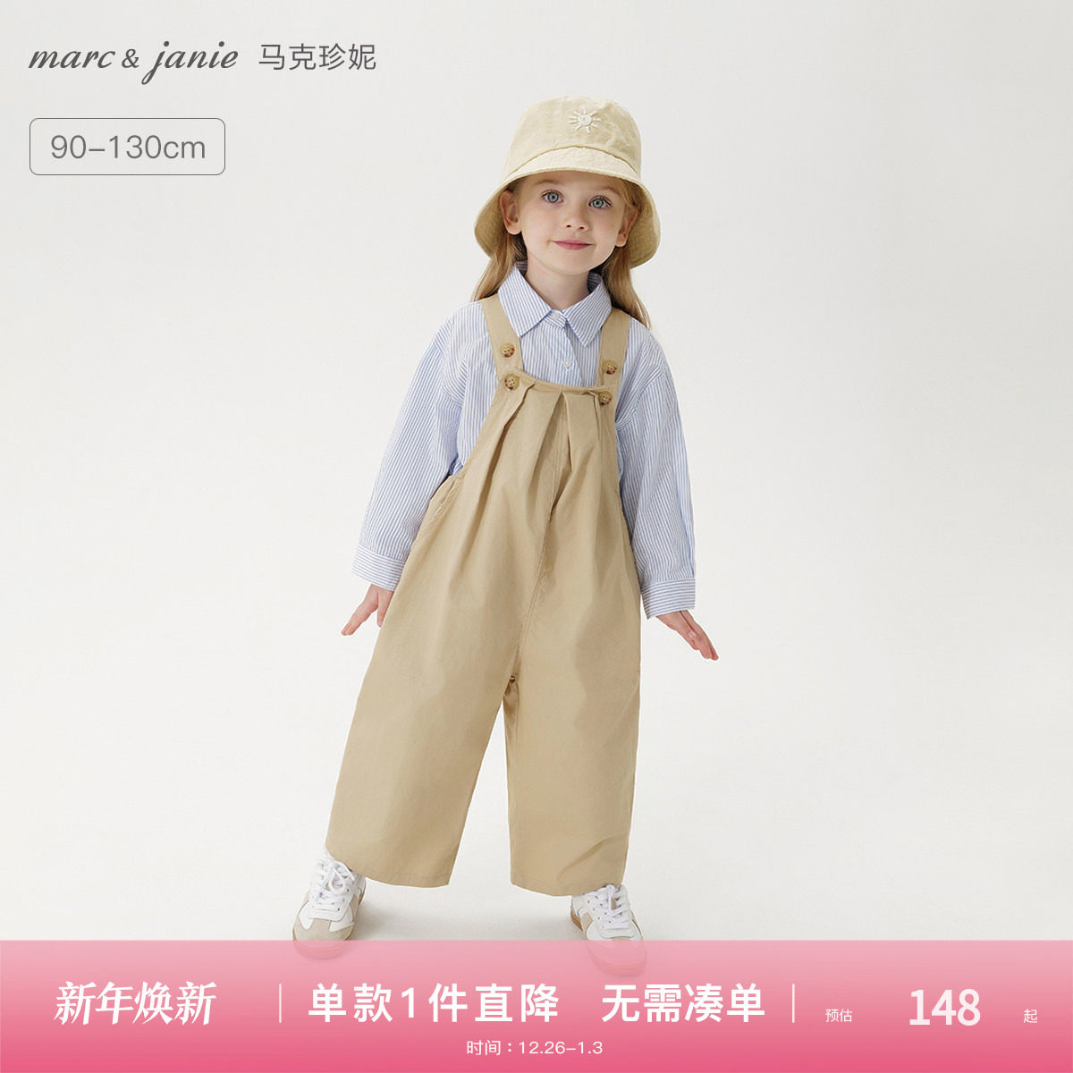 马克珍妮女童柔软舒适背带裤宝宝纯棉连体裤2025年春夏新款250282
