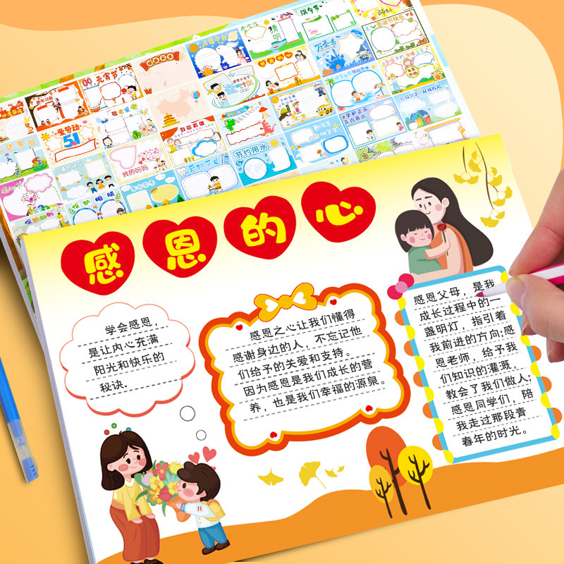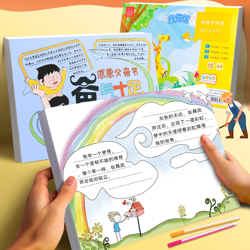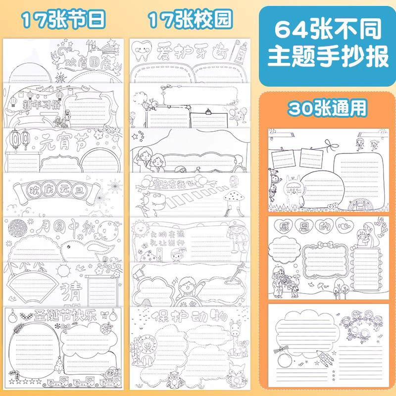 国庆节2026手抄报模板六一小学生一年级读书卡线稿绘画半成品初中生镂空a4专用纸a3节日画画神器8k小报大全