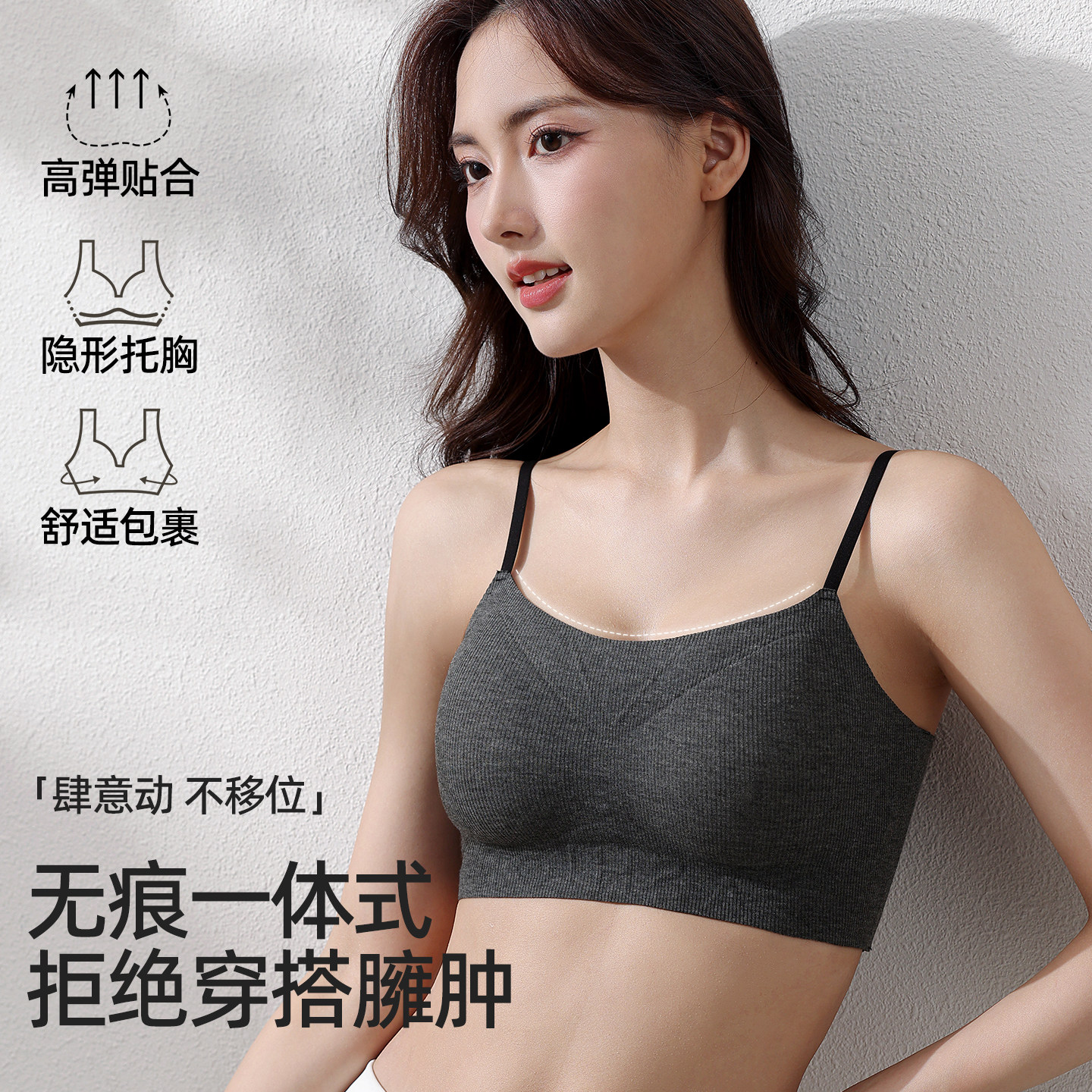 无痕美背抹胸内衣女小胸聚拢可外漏细肩带一体固定杯背心式文胸罩