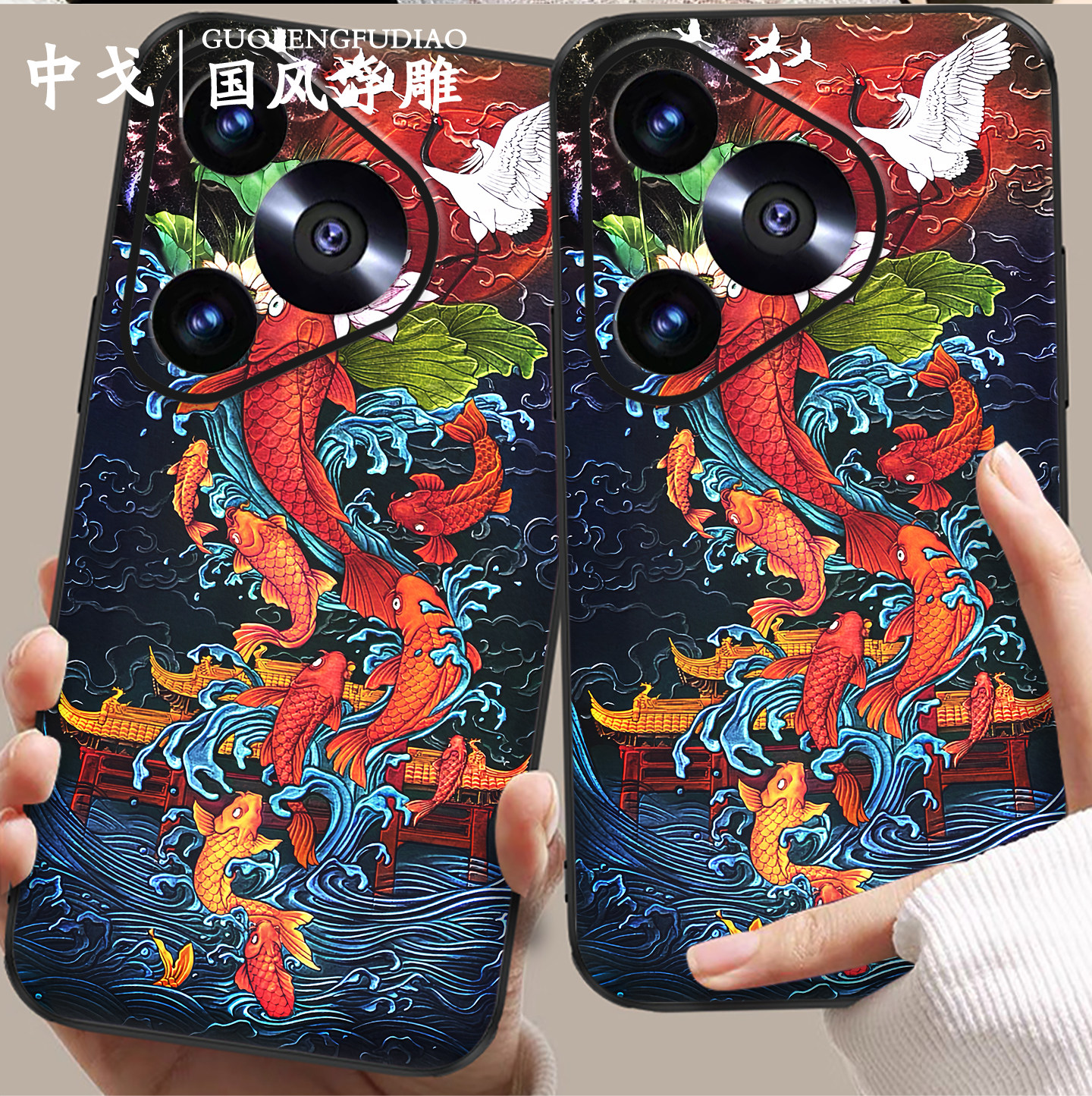 立体浮雕鲤鱼跃龙门适用华为pura80ultra手机壳pura70pro高级P60中国风P50荣耀magic70男女nova14pro全包防摔