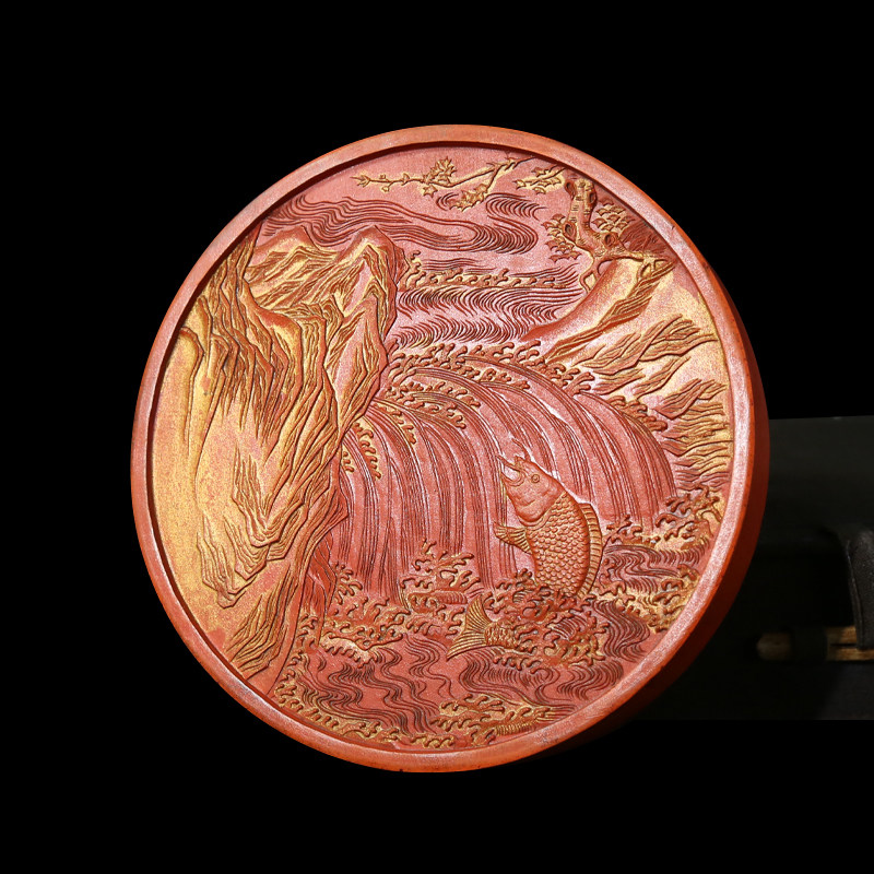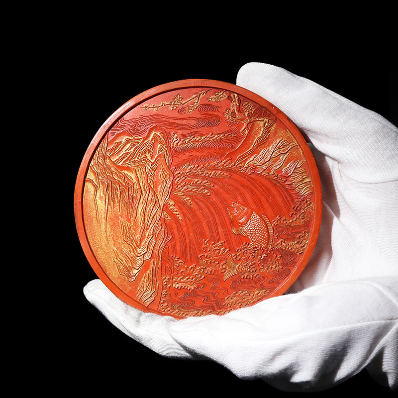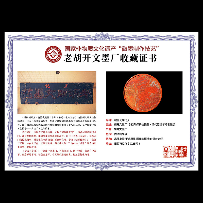 国家非遗 1982年制 清代乾隆老墨版 限量款《鱼跃龙门》收藏老古墨块 胡开文朱砂墨条高档徽墨工艺品文房四宝