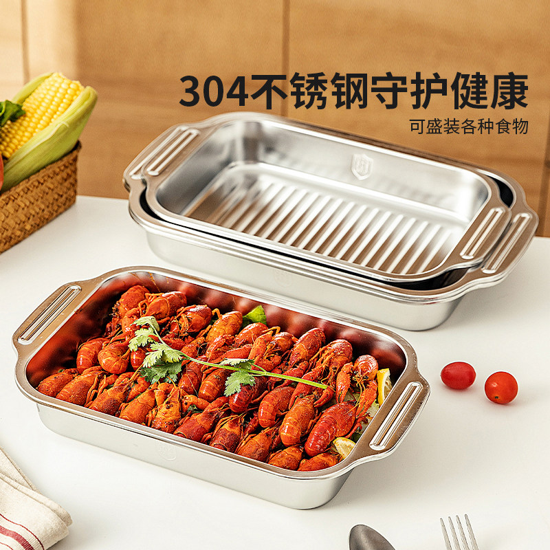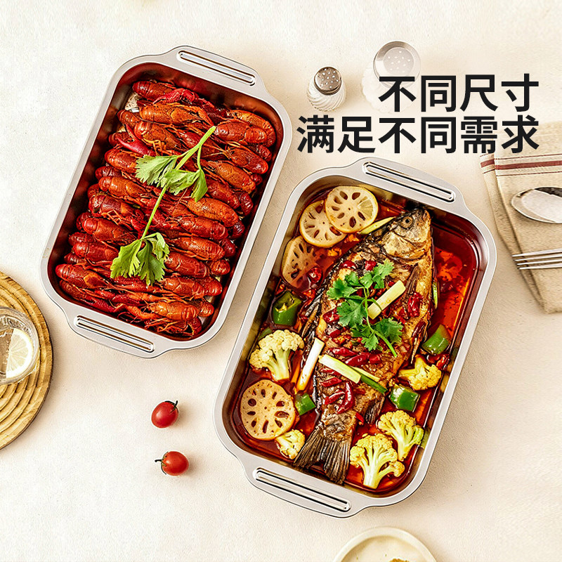 摩登主妇烤鱼盘小龙虾专用盘304不锈钢餐具海鲜捞汁火锅备菜托盘
