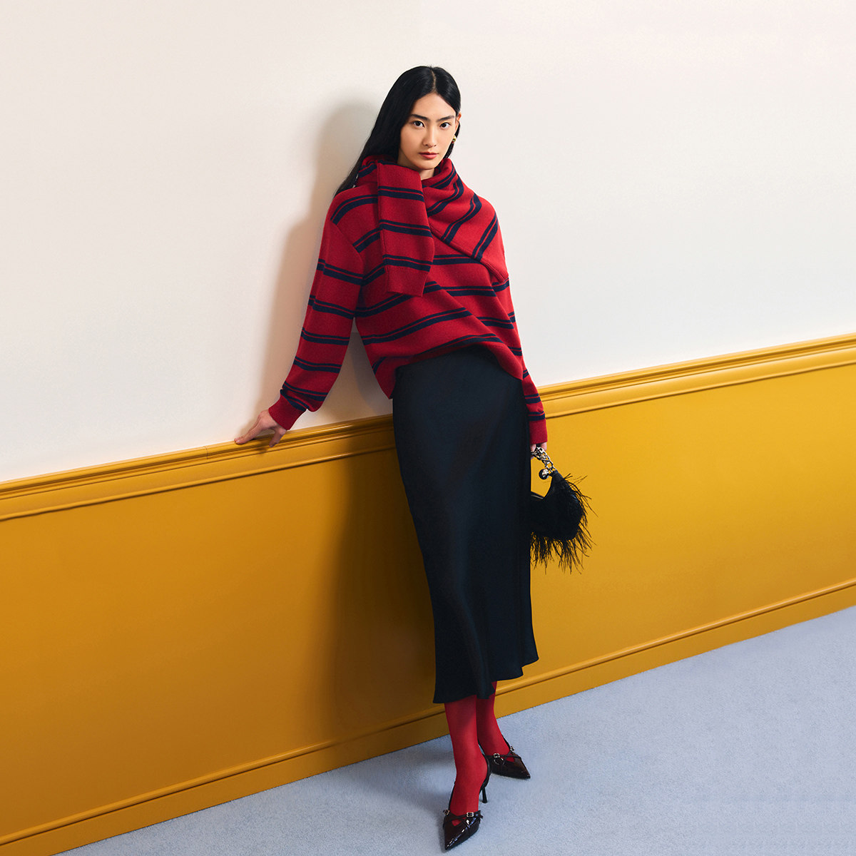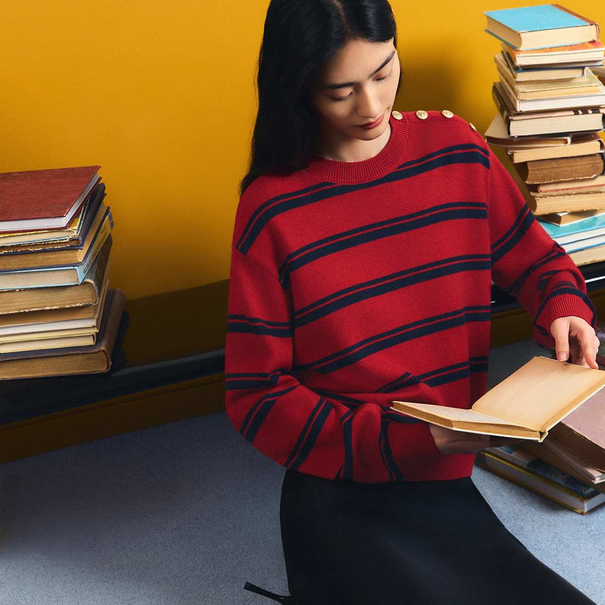 MIU系经典撞色条纹针织衫,时髦英伦风