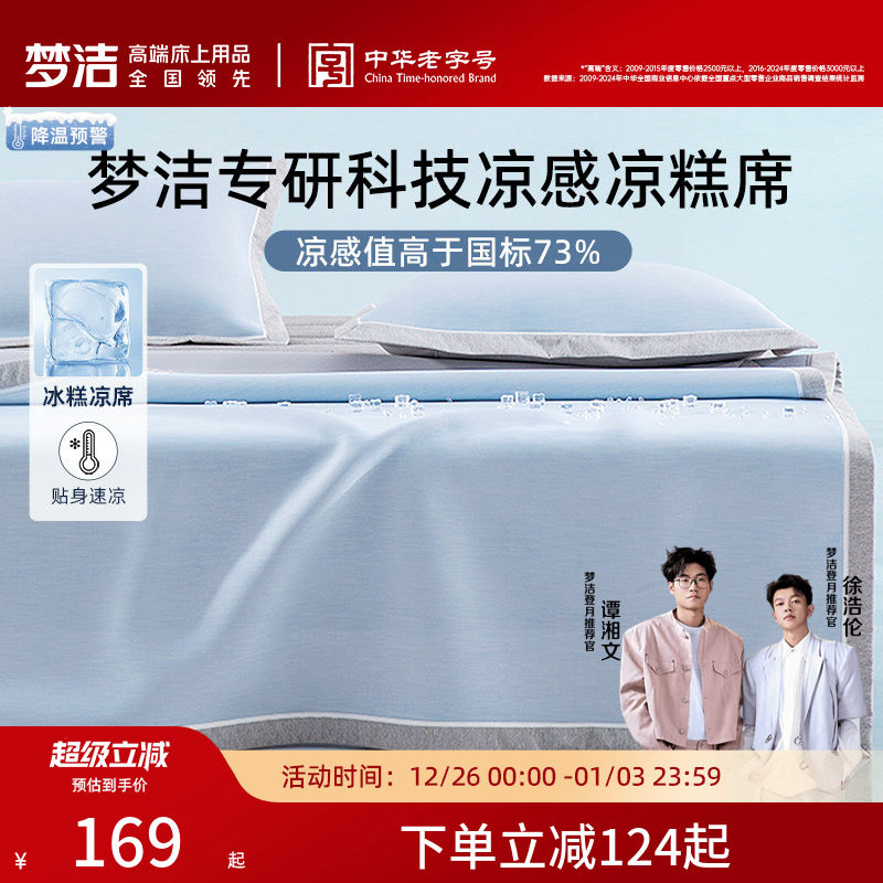 梦洁冰丝凉席可机洗夏季凉感凉糕软席2025新款可水洗Q弹空调席子