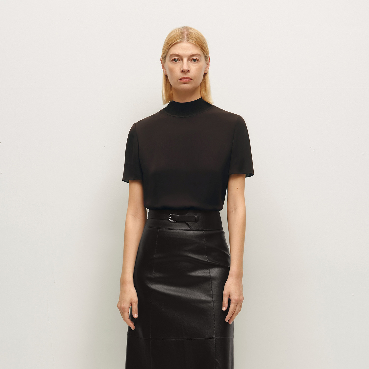 【重磅真丝】OVVOutlet秋冬热卖女装19MM双乔短袖半高领上衣