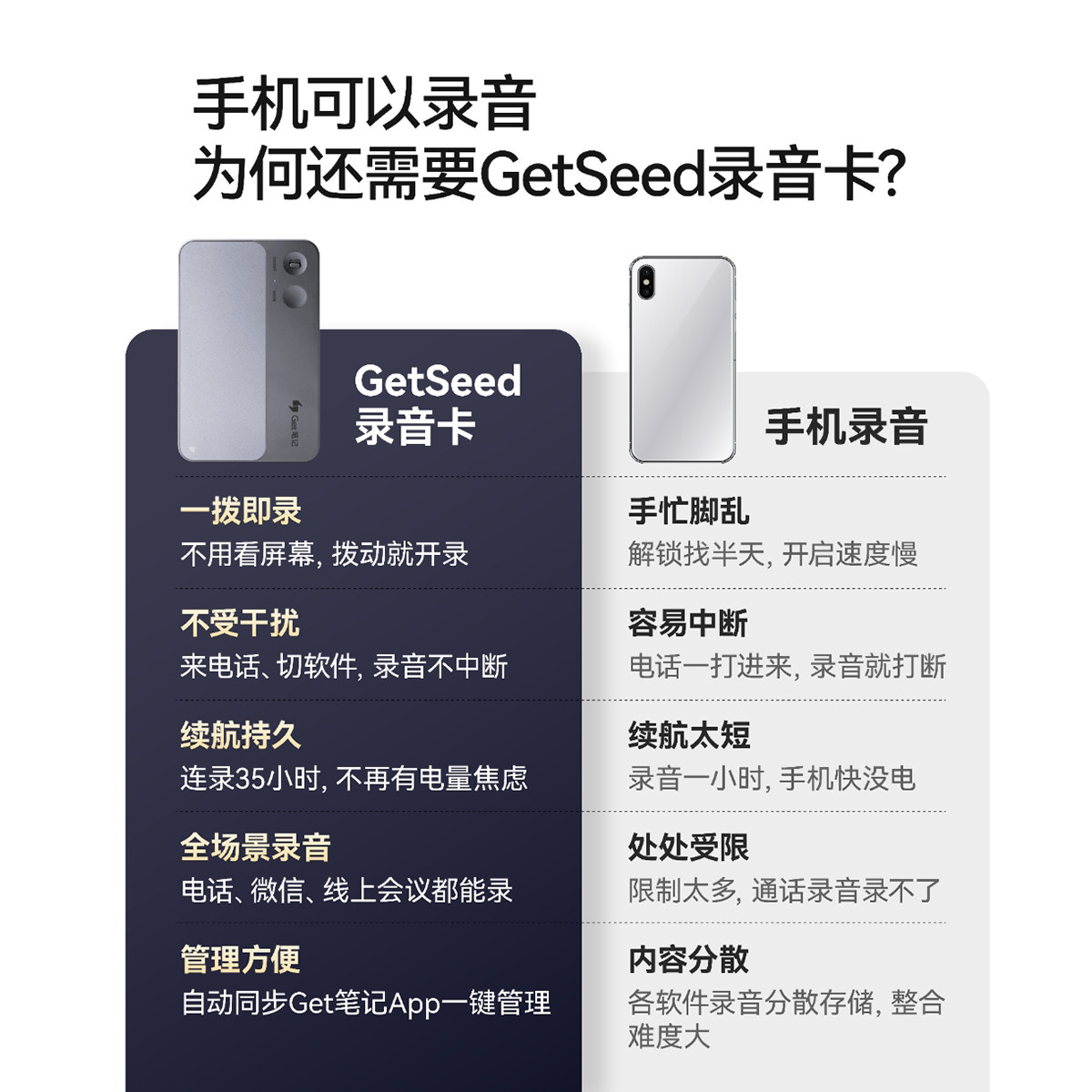 GetseedAI录音卡 得到Get笔记录音卡 商务会议学生课堂智能录音笔