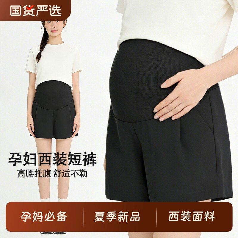 孕妇西装短裤夏季阔腿裤外穿薄款打底裤宽松休闲五分裤子托腹裤装