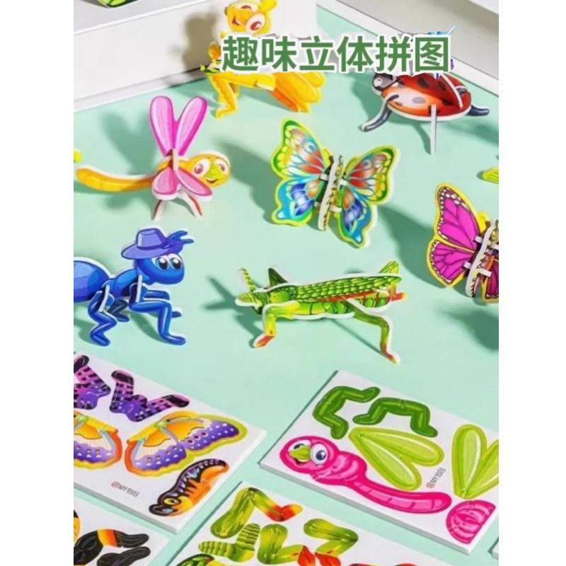 3D趣味昆虫立体拼图儿童创意DIY玩具幼儿园早教手工拼装益智卡片