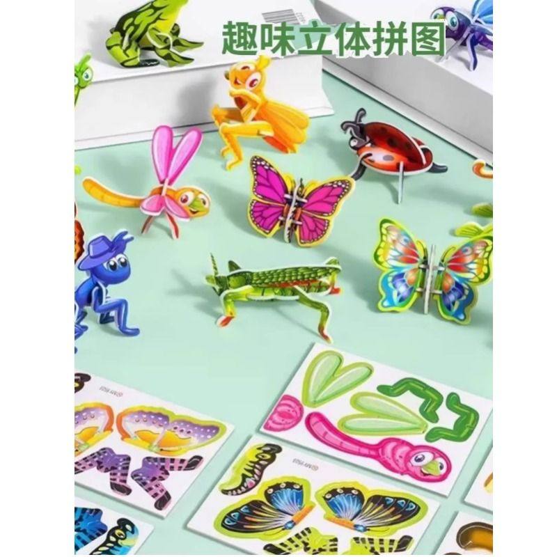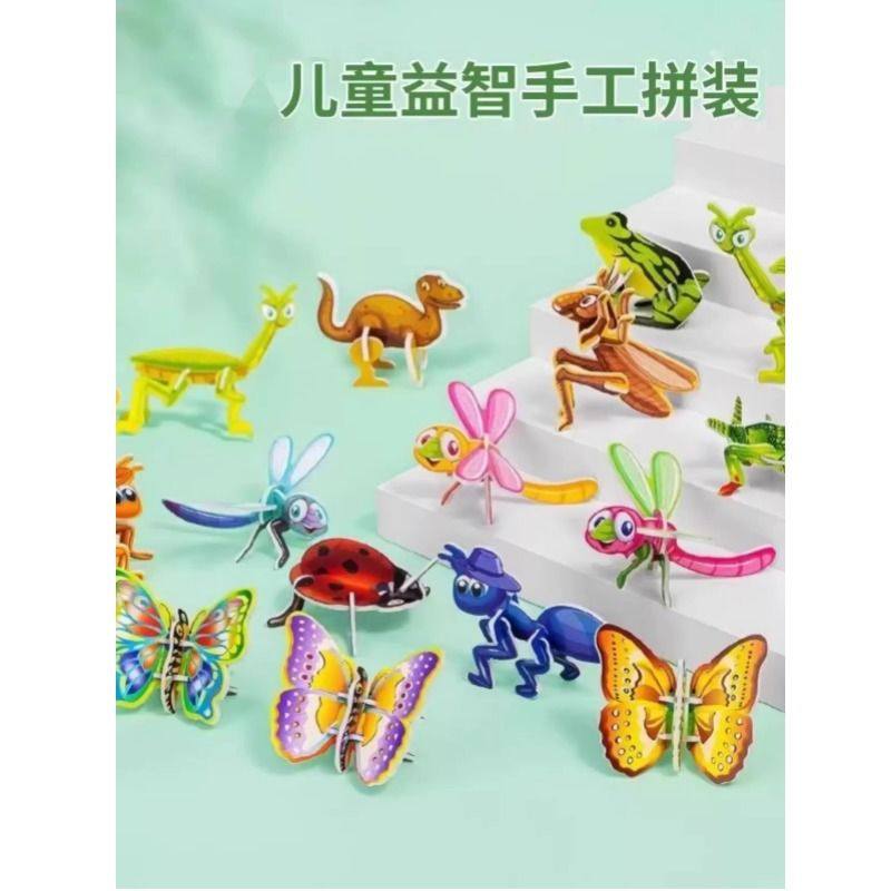 3D立体动物拼图儿童趣味昆虫创意diy玩具幼儿早教手工拼装益智卡